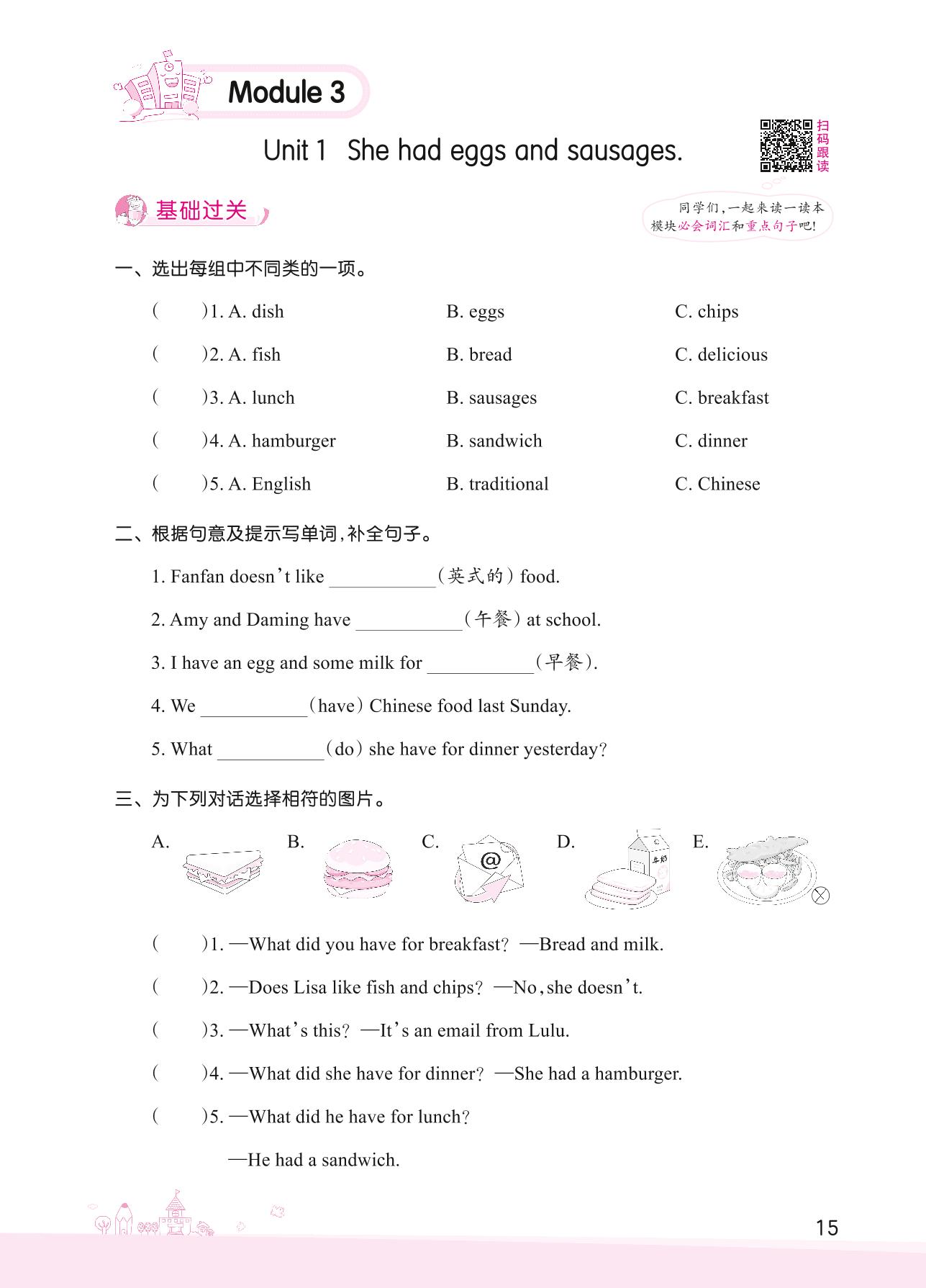 2022下册五年级英语外研版 Module 3—Unit 1 She had eggs and sausages.