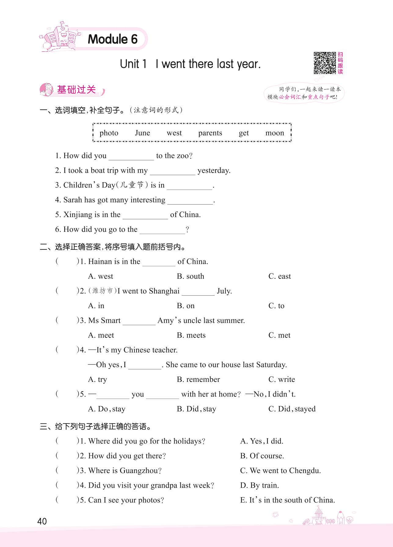 2022下册五年级英语外研版 Module 6—Unit 1 I went there last year.