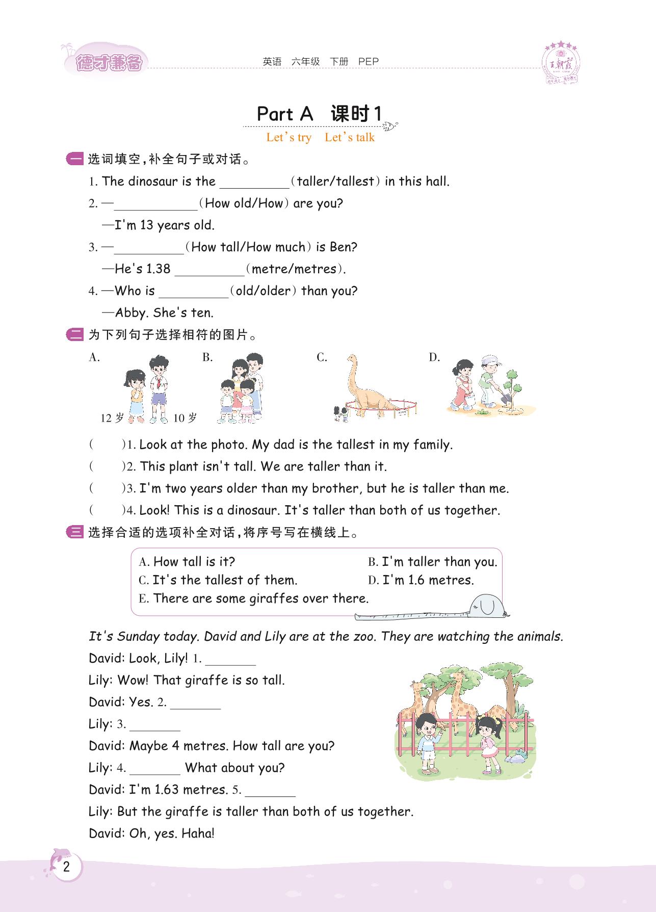 2022下册六年级英语人教PEP版 Unit 1—Part A 课时 1 Let’s try Let’s talk