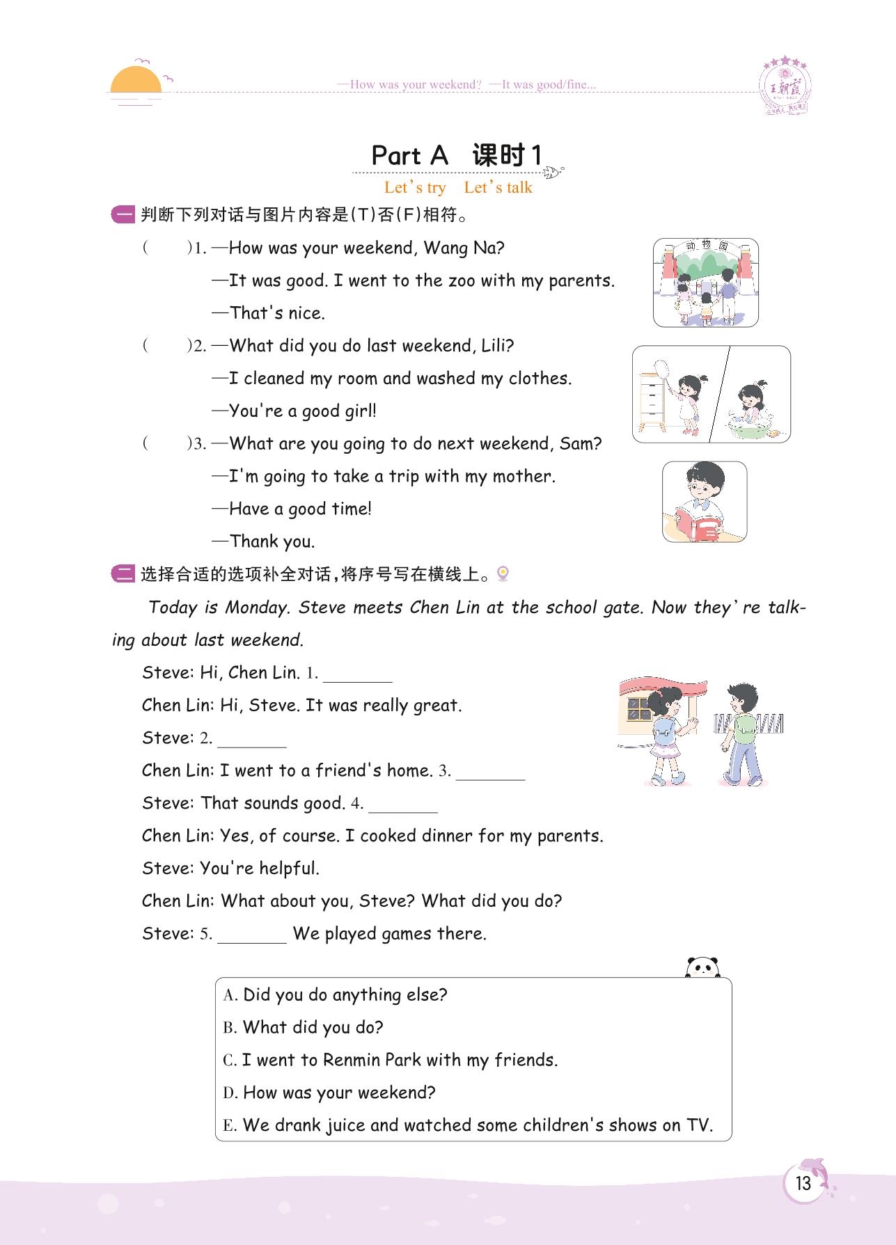 2022下册六年级英语人教PEP版 Unit 2—Part A 课时 1 Let’s try Let’s talk