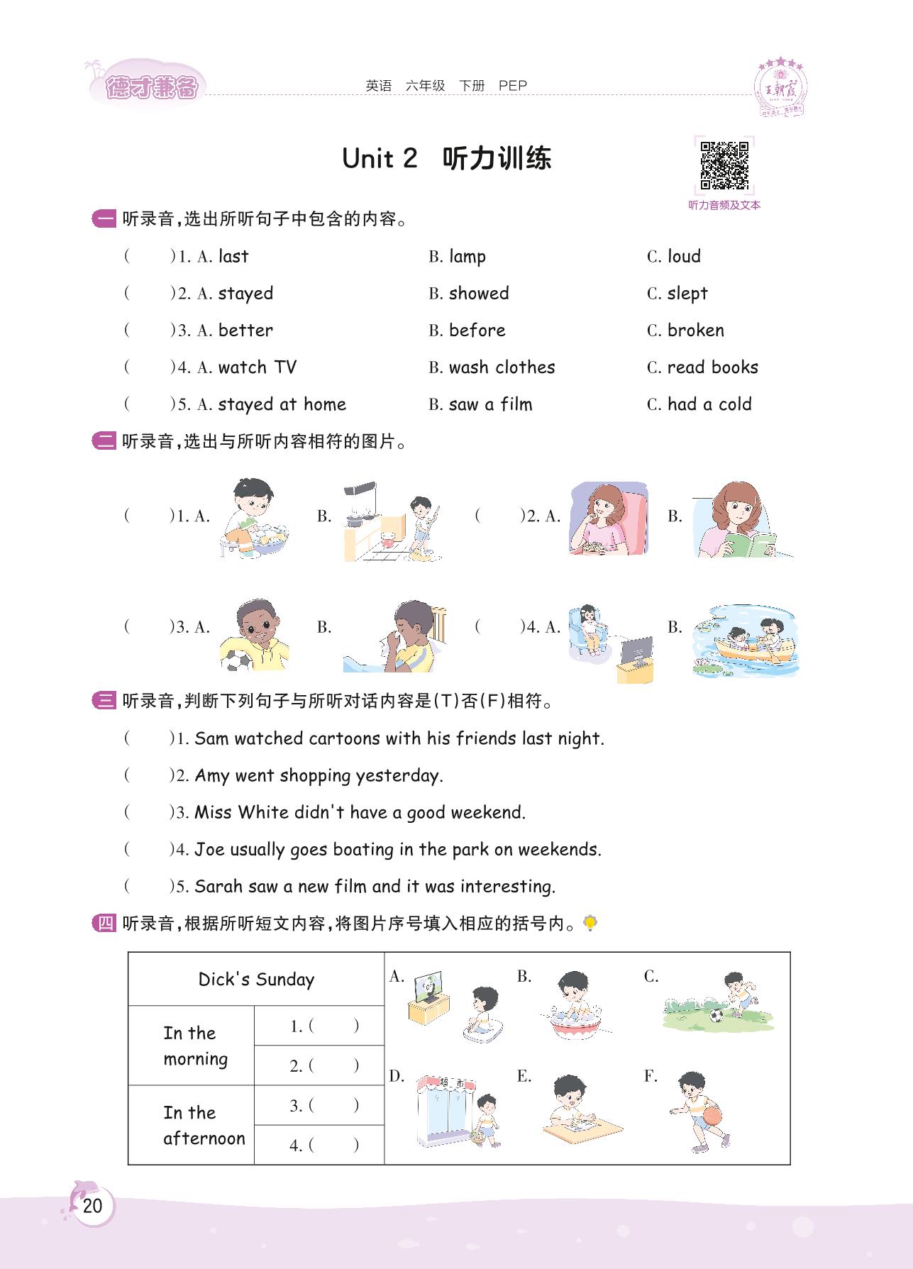 2022下册六年级英语人教PEP版 Unit 2 听力训练
