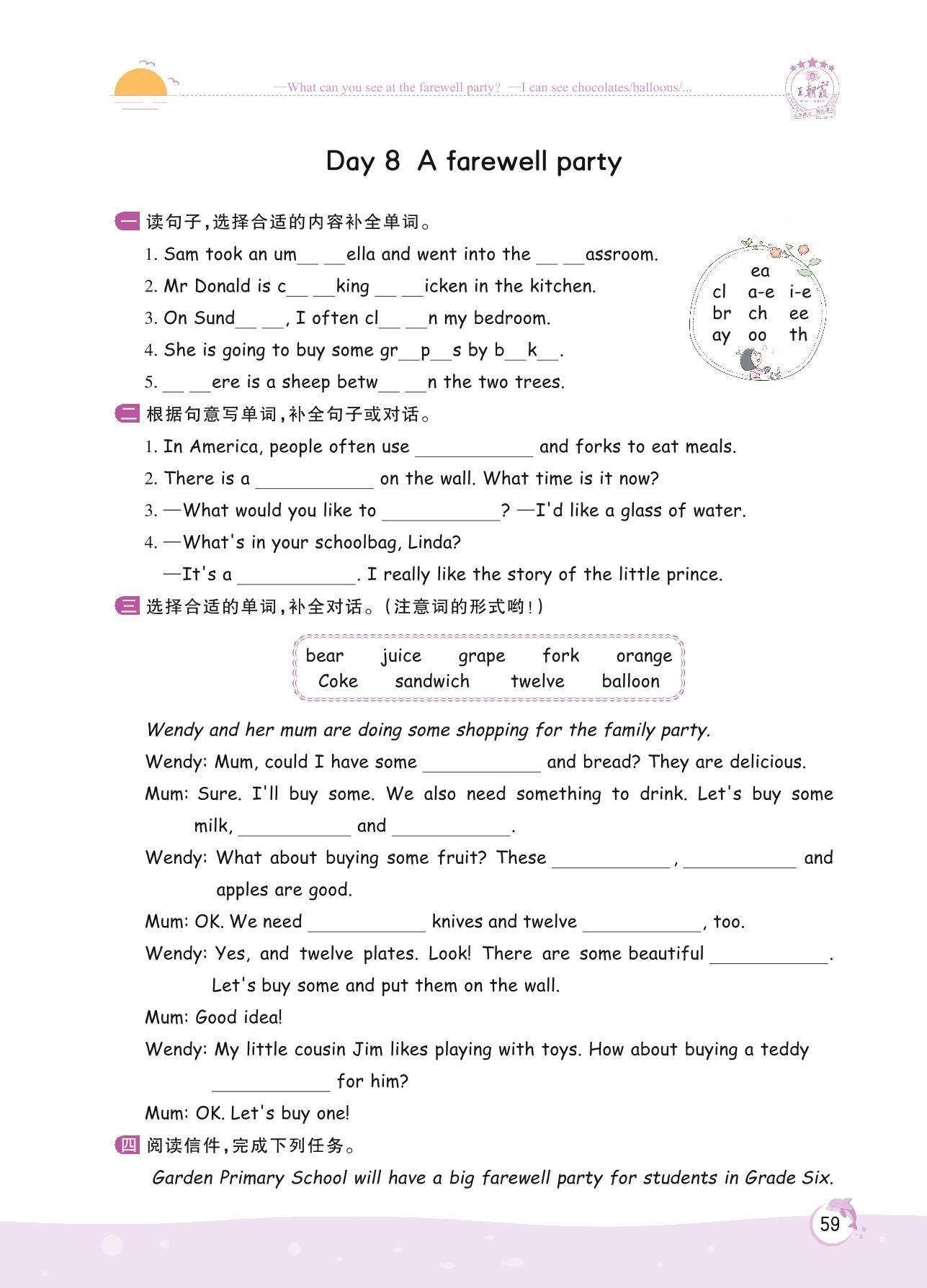 2022下册六年级英语人教PEP版 Recycle—Day 8 A farewell party