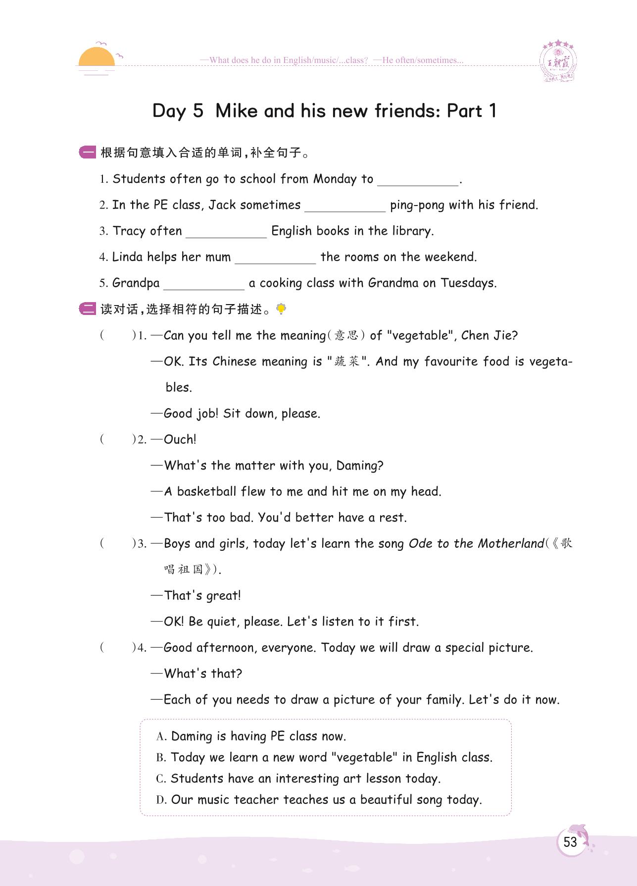 2022下册六年级英语人教PEP版 Recycle—Day 5 Mike and his new friends:Part 1 _R220217154039708