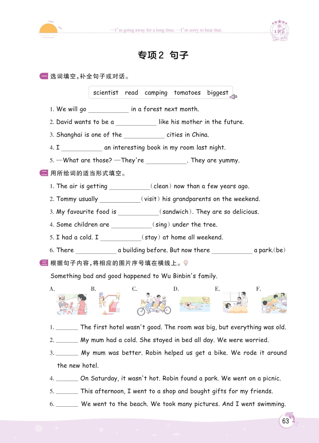 2022下册六年级英语人教PEP版 专项 2 句子