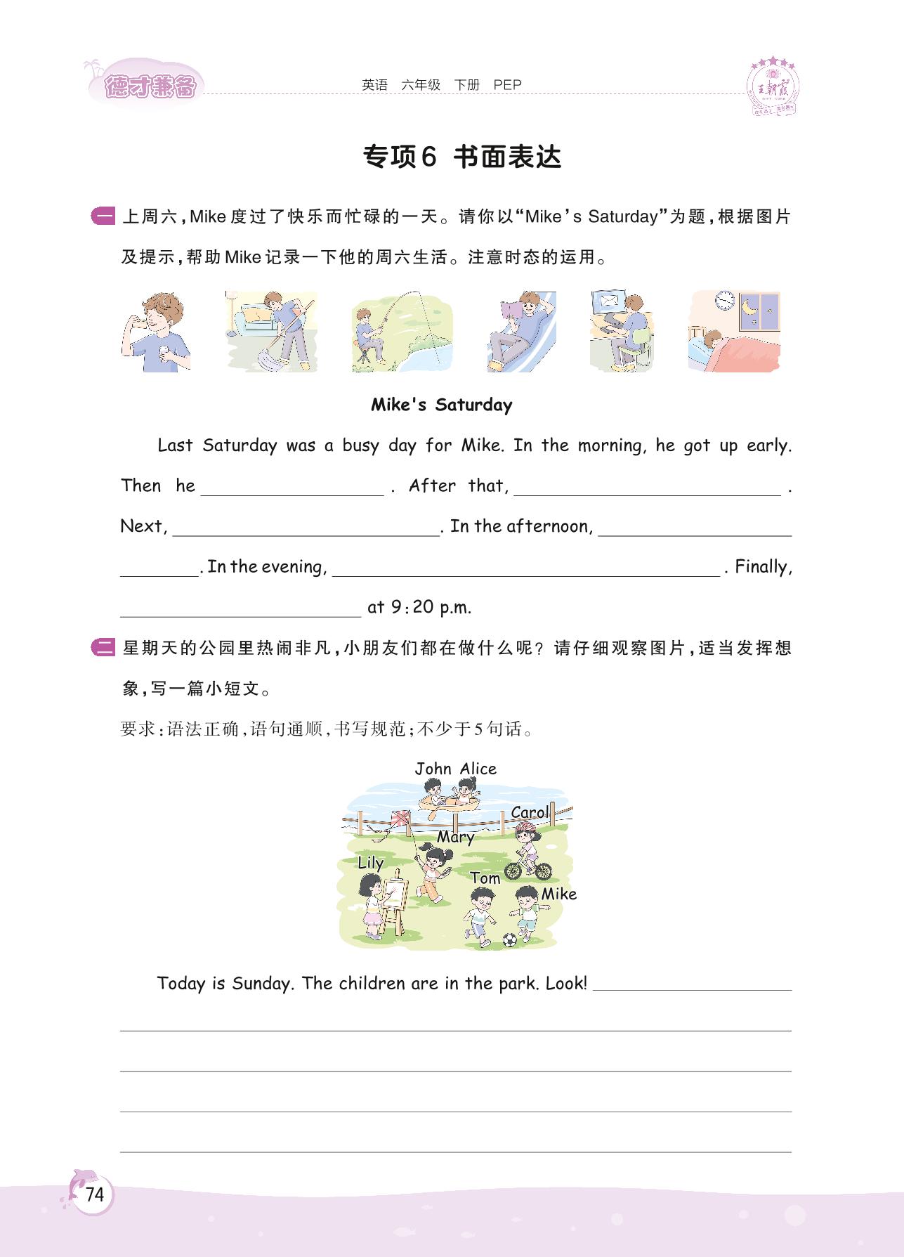 2022下册六年级英语人教PEP版 专项 6 书面表达