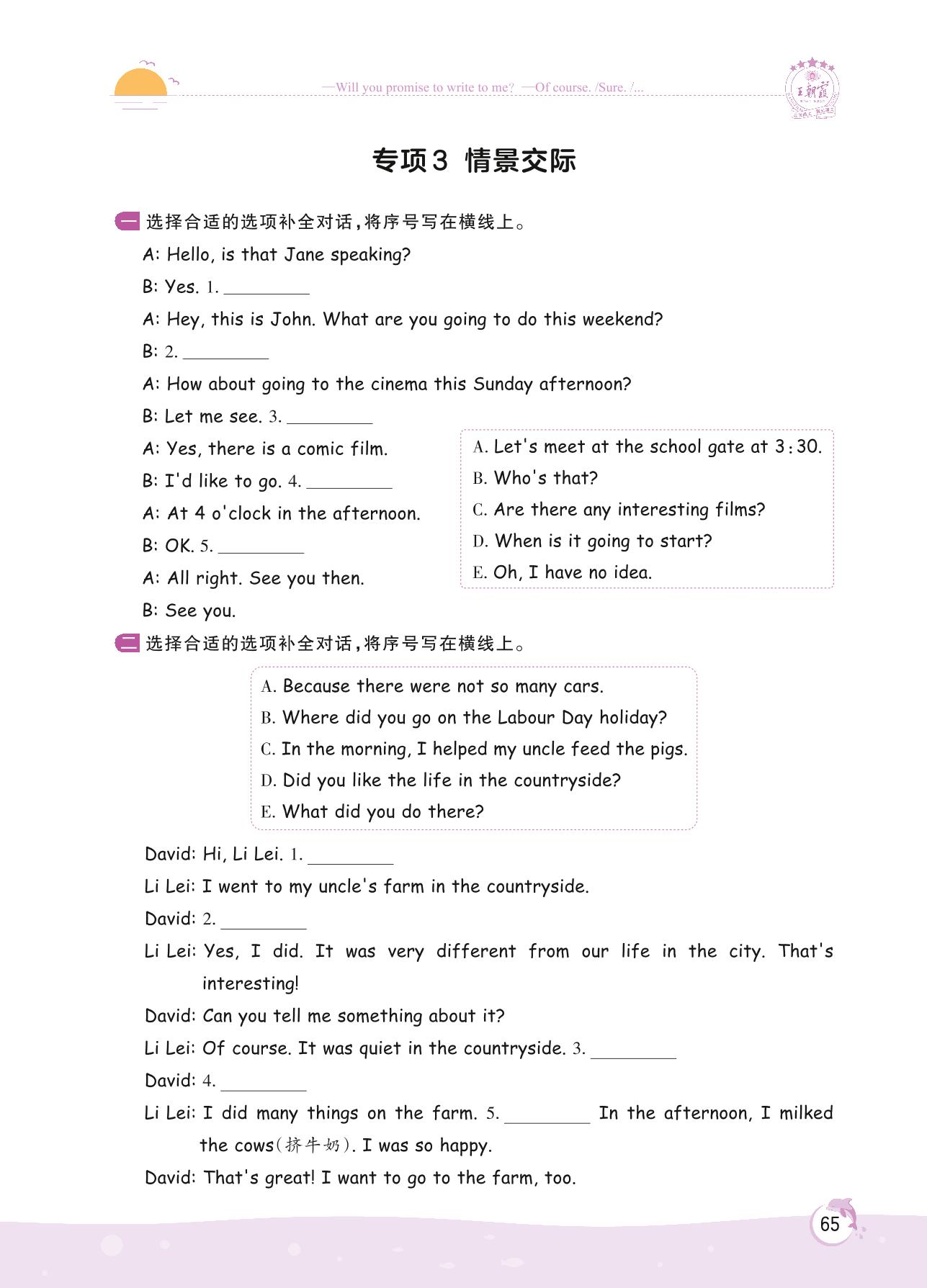 2022下册六年级英语人教PEP版 专项 3 情景交际