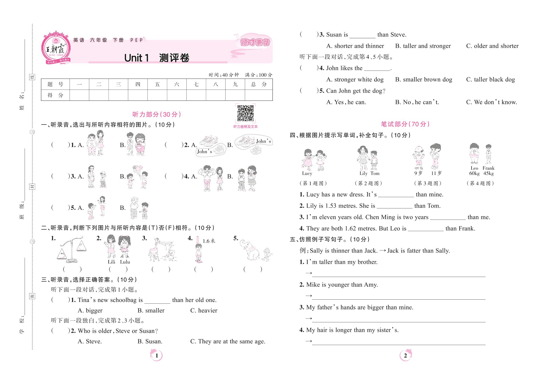 六年级英语人教PEP版(三起始)下册单元卷