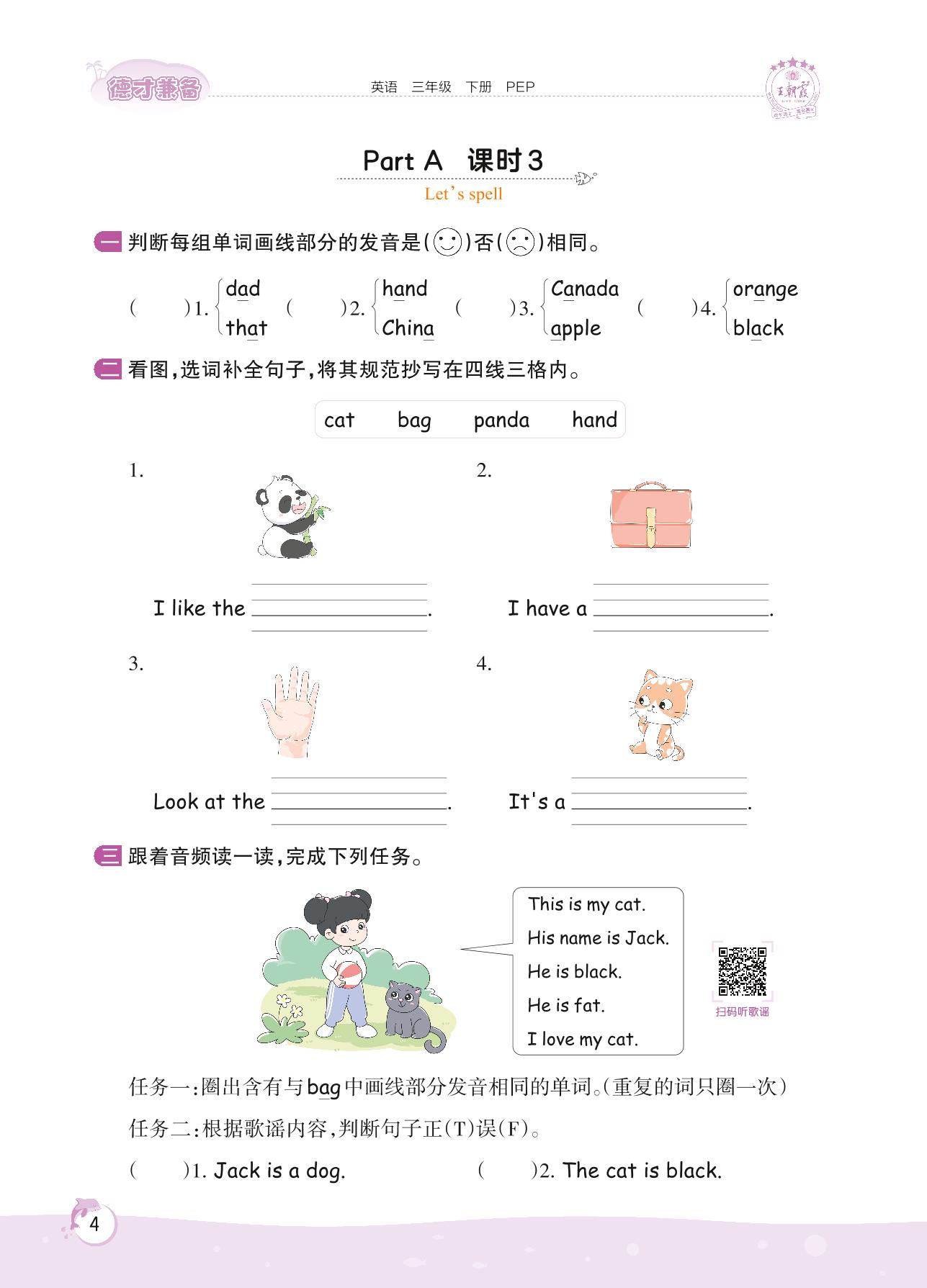 2022下册三年级英语人教PEP版 Unit 1—Part A 课时 3 Let’s spell
