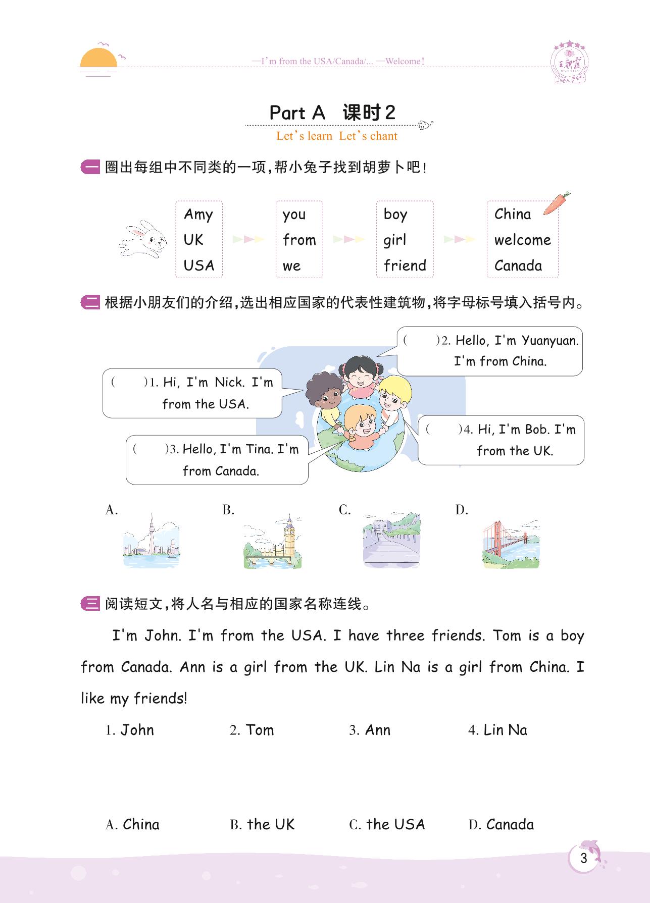 2022下册三年级英语人教PEP版 Unit 1—Part A 课时 2 Let’s learn Let’s chant