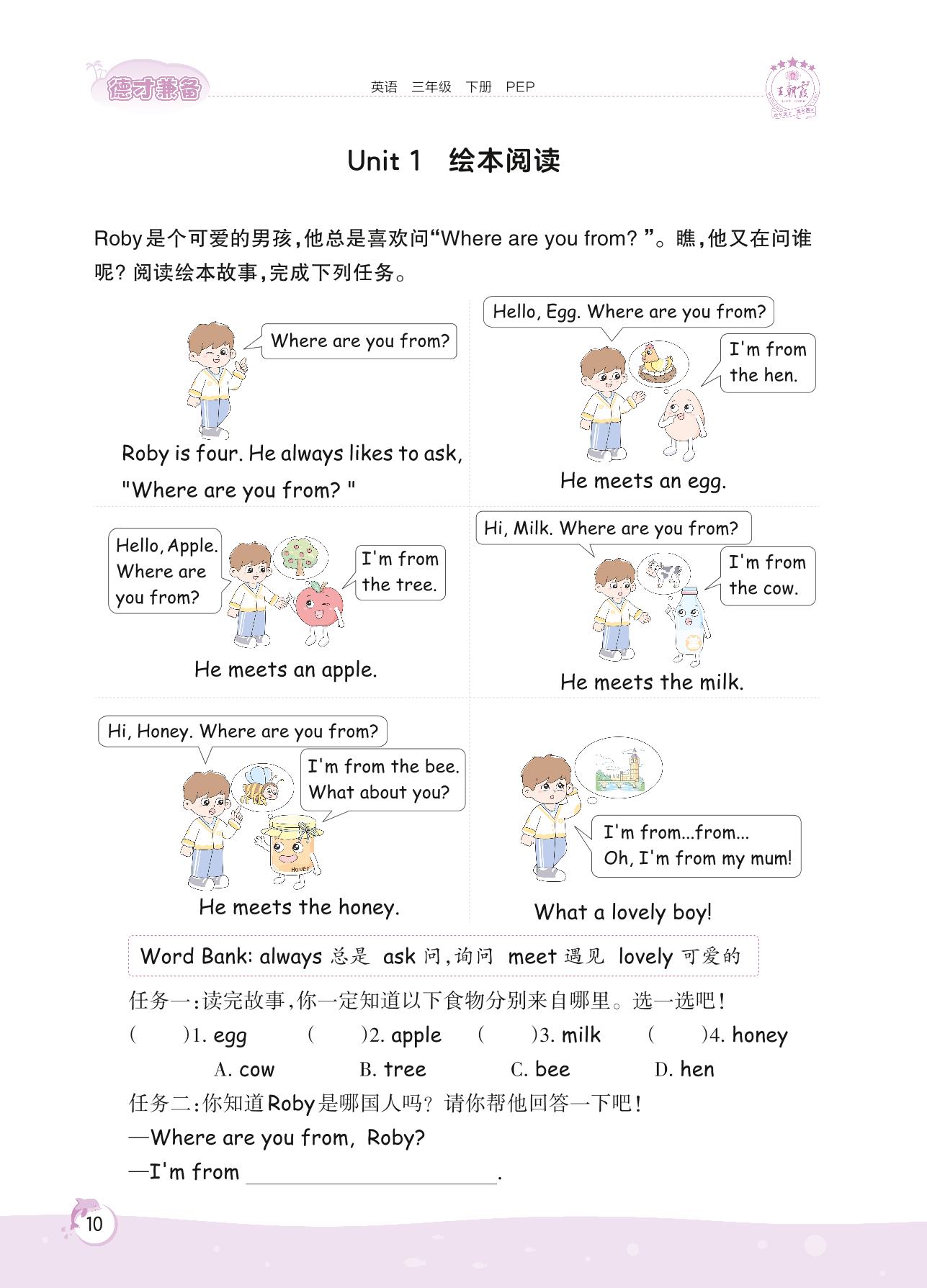 2022下册三年级英语人教PEP版 Unit 1 绘本阅读