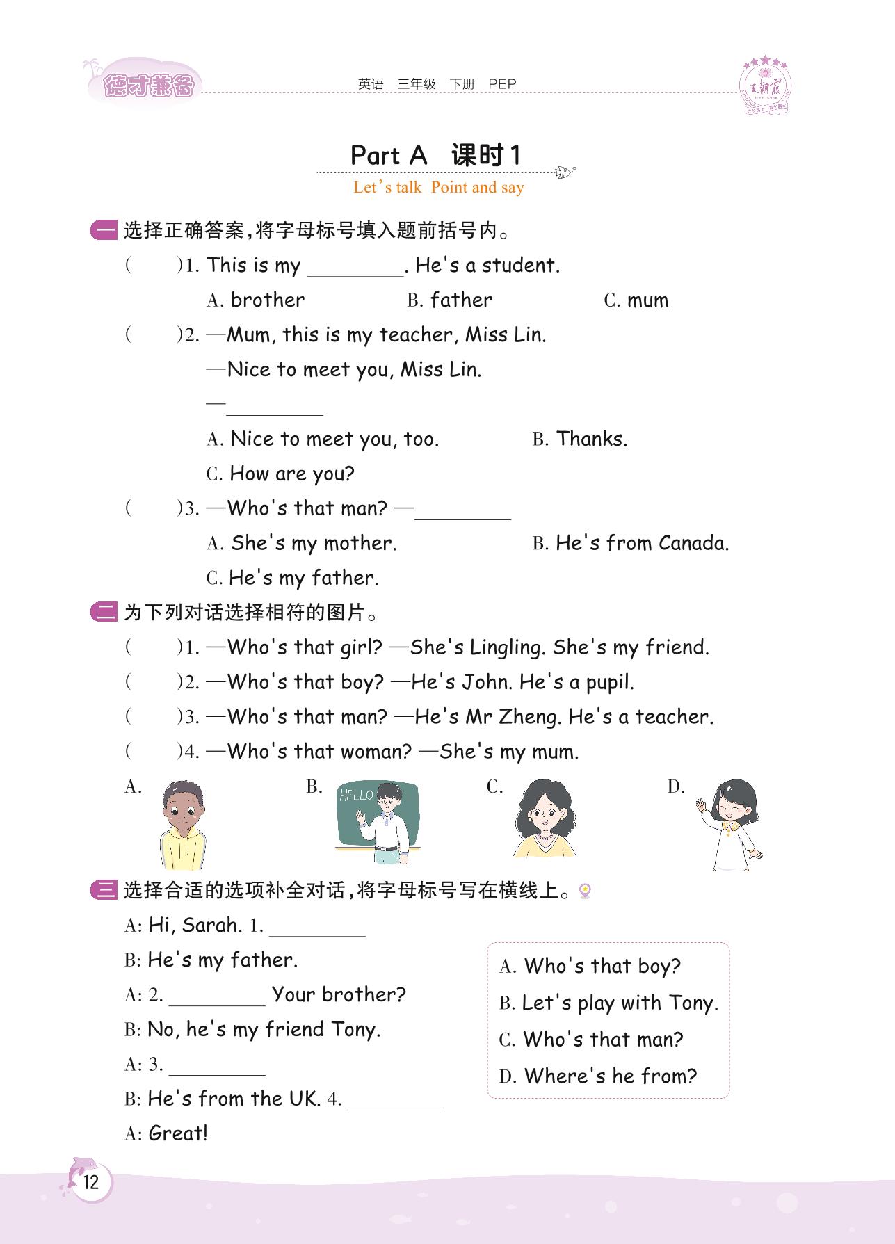 2022下册三年级英语人教PEP版 Unit 2—Part A 课时 1 Let’s talk Point and say