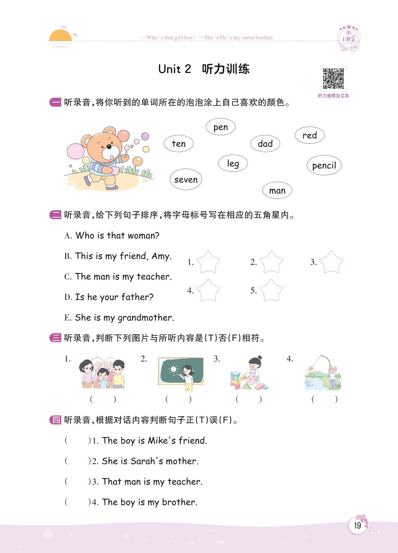 2022下册三年级英语人教PEP版 Unit 2 听力训练