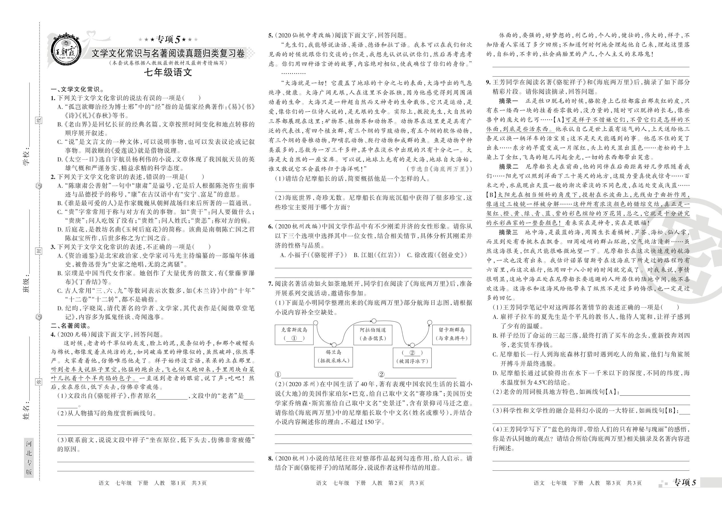 王朝霞期末专项卷——文学文化常识与名著阅读、口语交际与综合性学习七年级下册语文(人教版)【0】