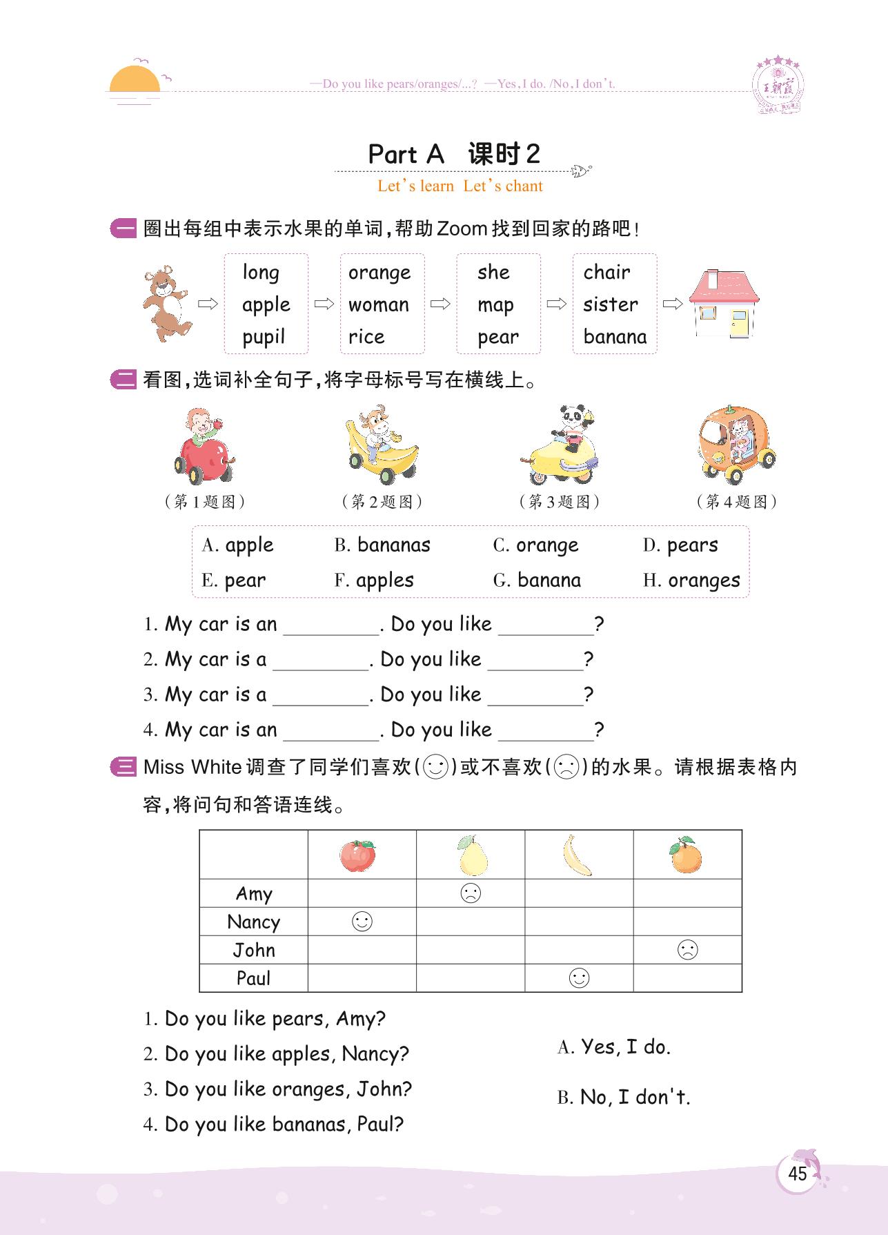 2022下册三年级英语人教PEP版 Unit 5—Part A 课时 2 Let’s learn Let’s chant