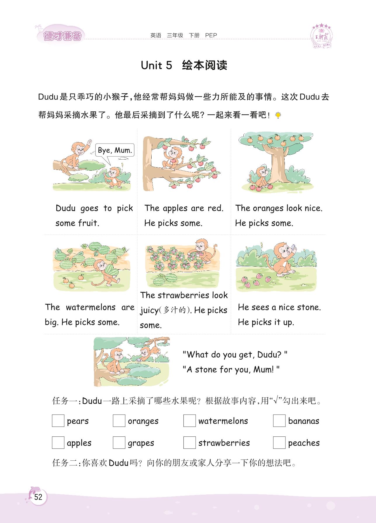 2022下册三年级英语人教PEP版 Unit 5 绘本阅读