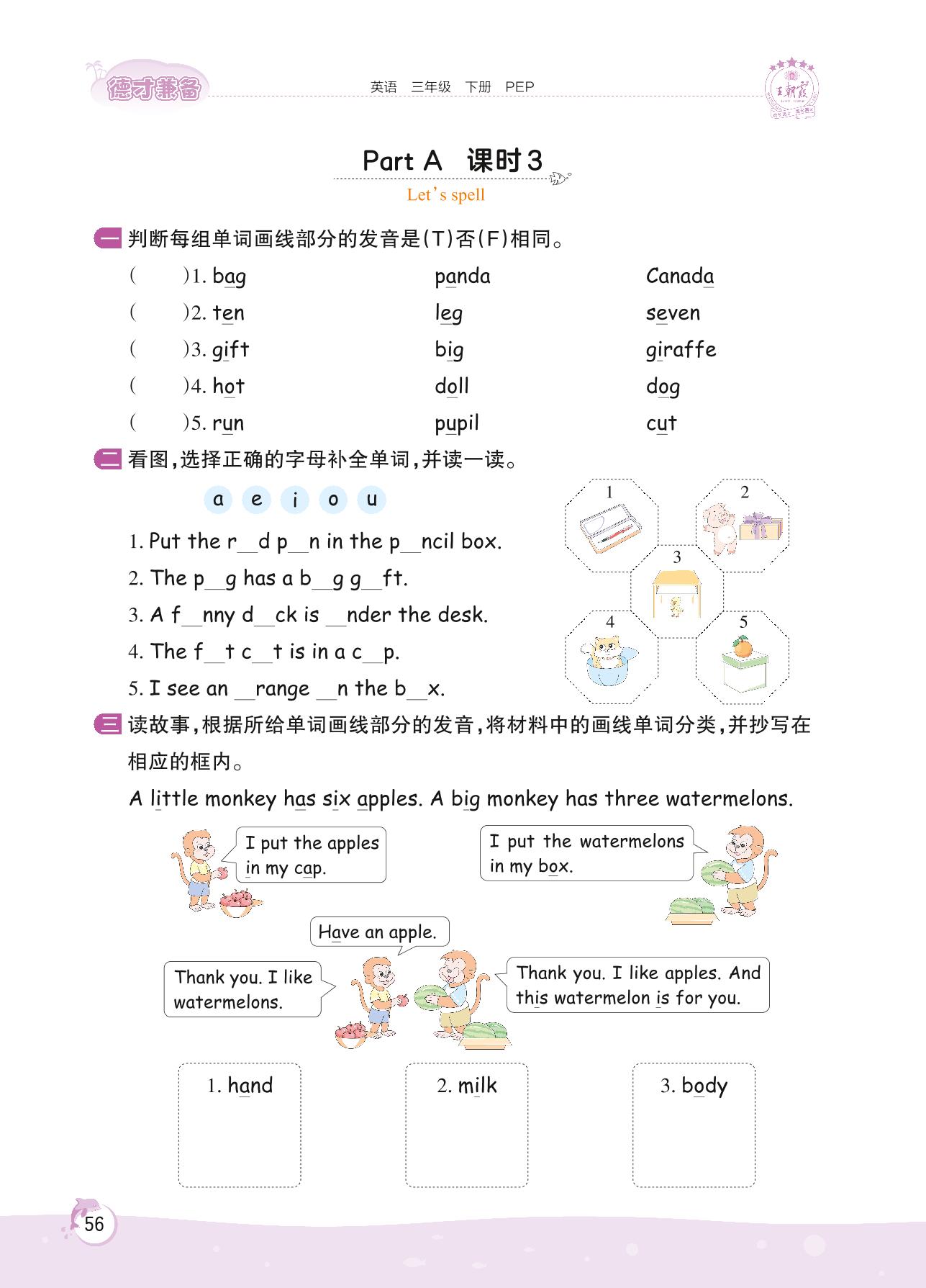2022下册三年级英语人教PEP版 Unit 6—Part A 课时 3 Let’s spell
