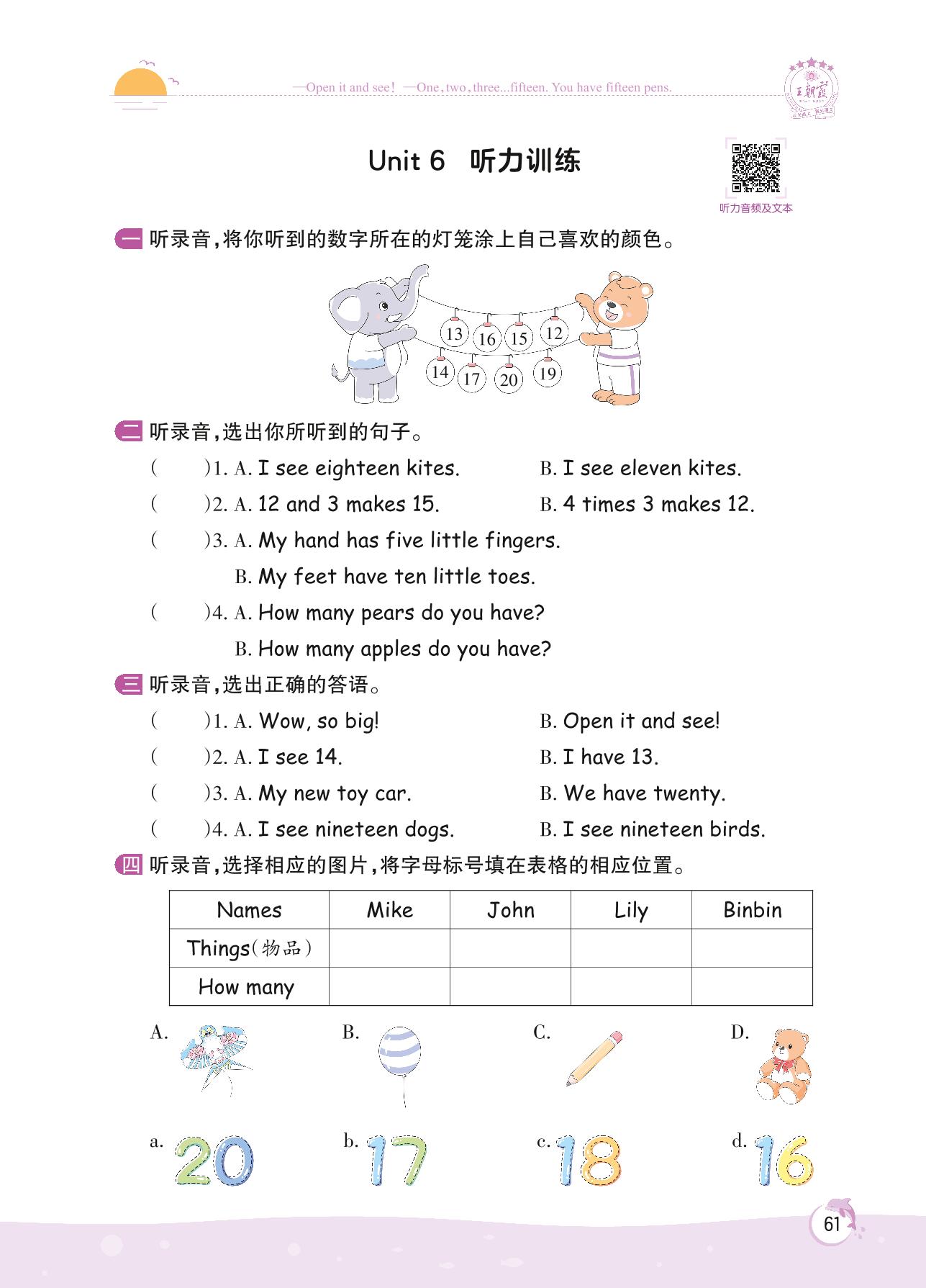 2022下册三年级英语人教PEP版 Unit 6 听力训练