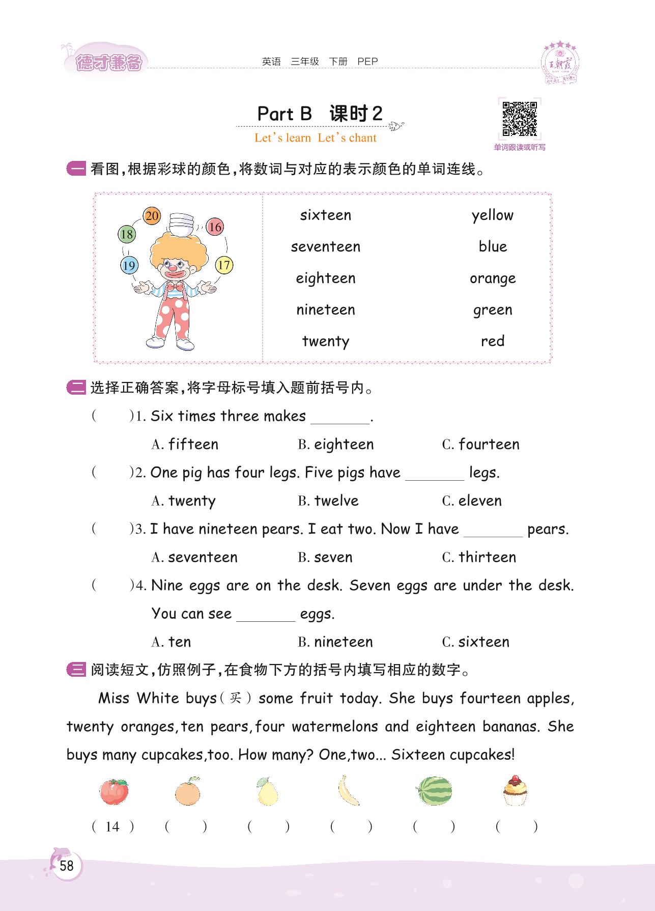 2022下册三年级英语人教PEP版 Unit 6—Part B 课时 2 Let’s learn Let’s chant