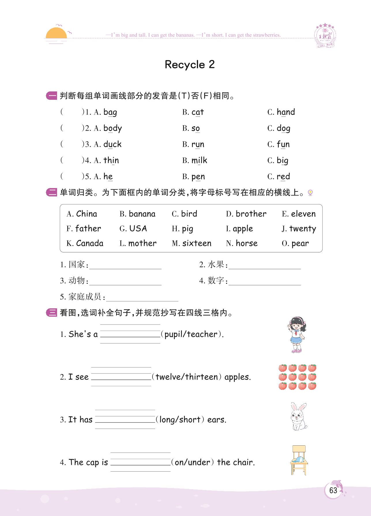 2022下册三年级英语人教PEP版 Recycle 2