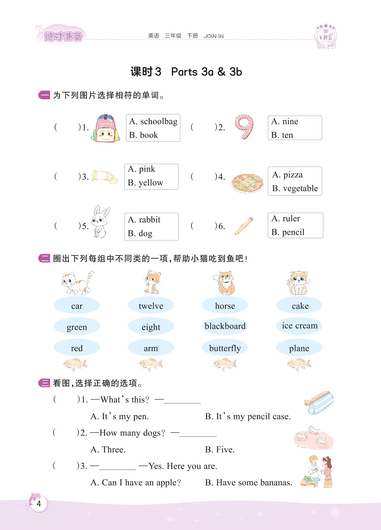 2022下册三年级英语剑桥版 Starter unit Good to see you again—课时 3 Parts 3a & 3b