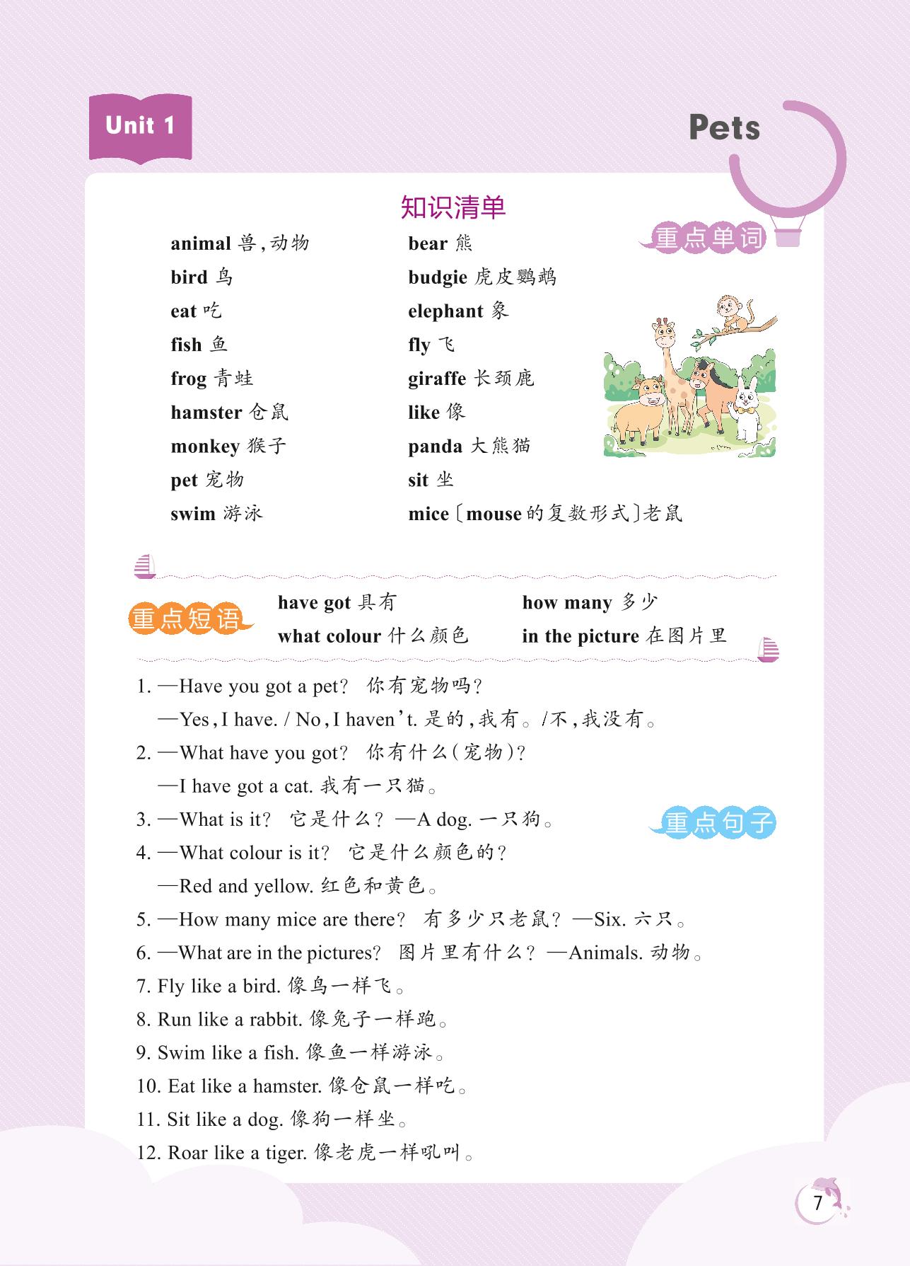 2022下册三年级英语剑桥版 Unit 1 知识清单