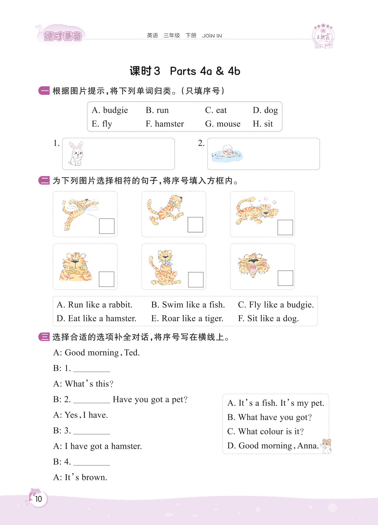 2022下册三年级英语剑桥版 Unit 1 Pets—课时 3 Parts 4a & 4b