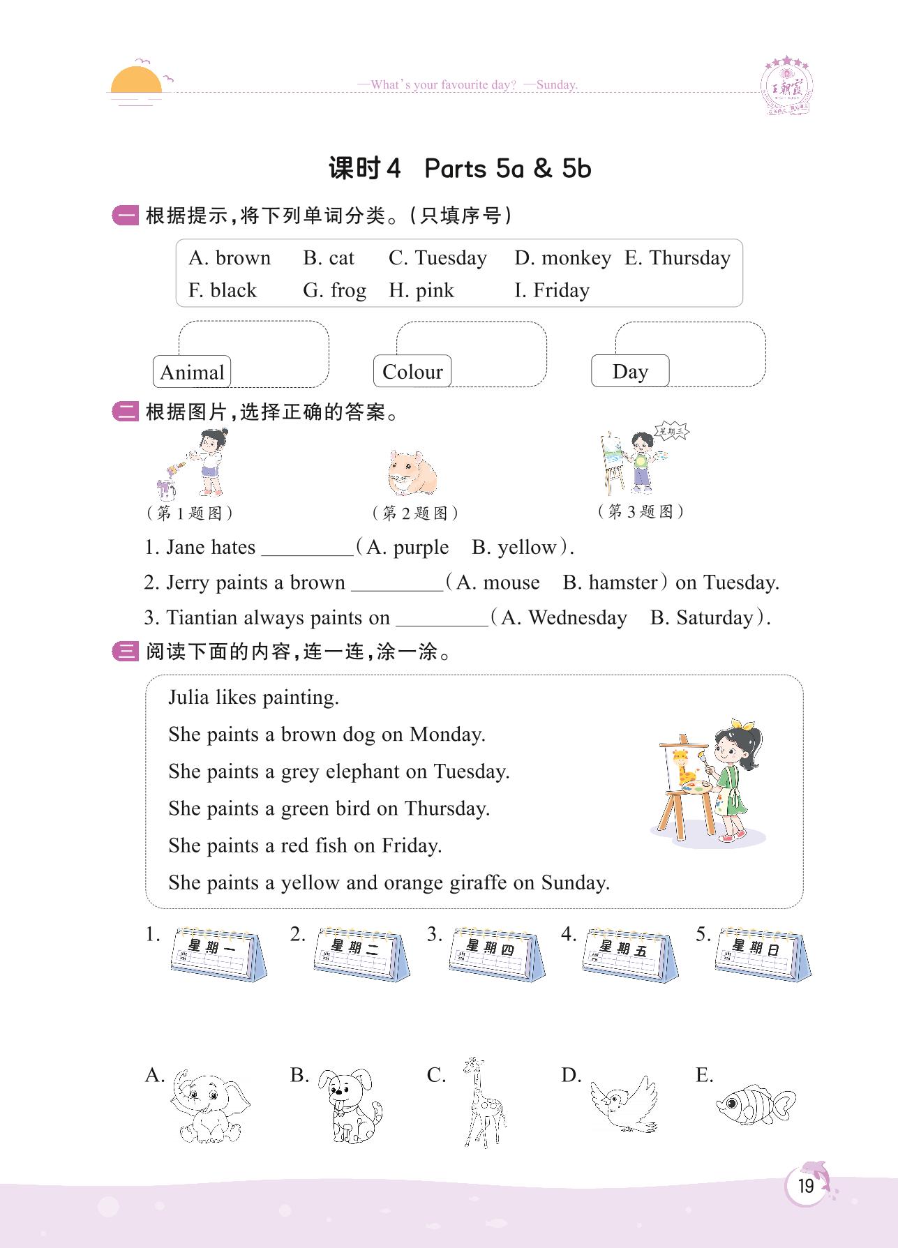 2022下册三年级英语剑桥版 Unit 2 The days of the week—课时 4 Parts 5a & 5b