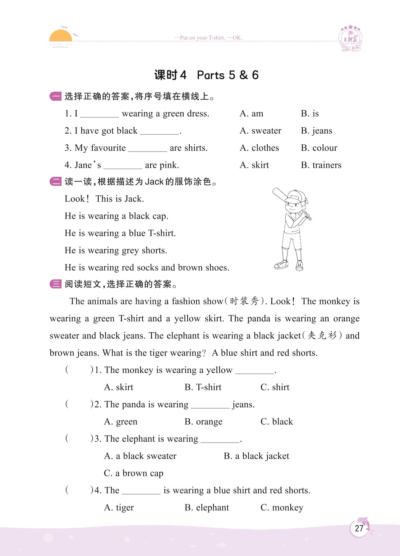 2022下册三年级英语剑桥版 Unit 3 Clothes—课时 4 Parts 5 & 6