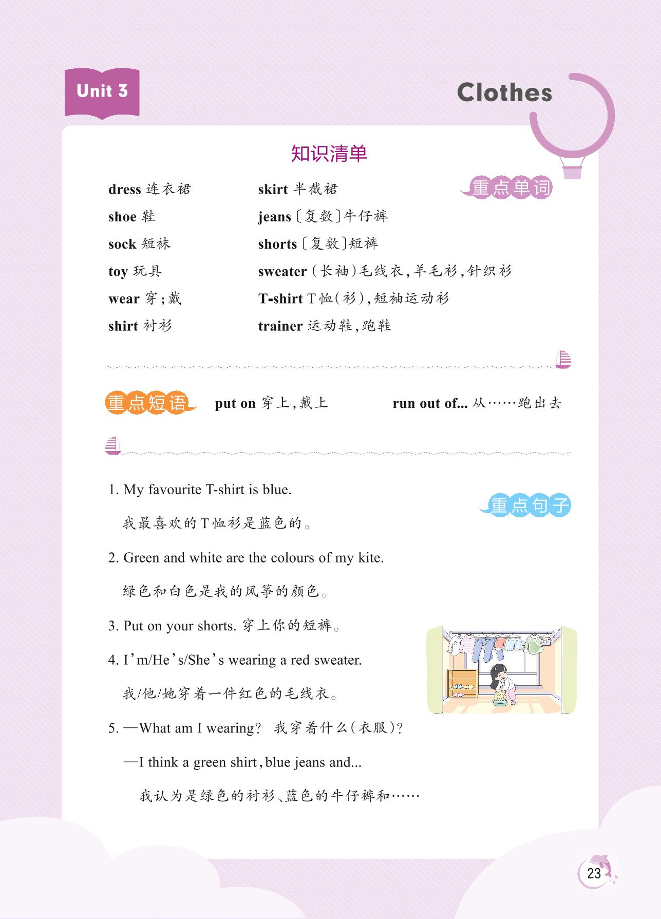 2022下册三年级英语剑桥版 Unit 3 知识清单