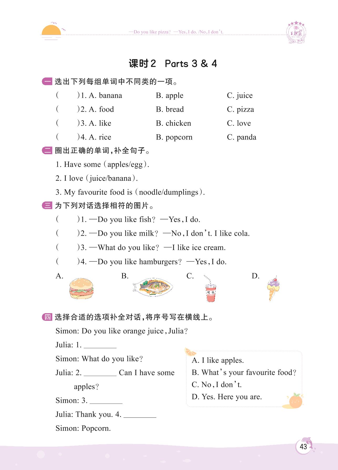 2022下册三年级英语剑桥版 Unit 5 Food—课时 2 Parts 3 & 4