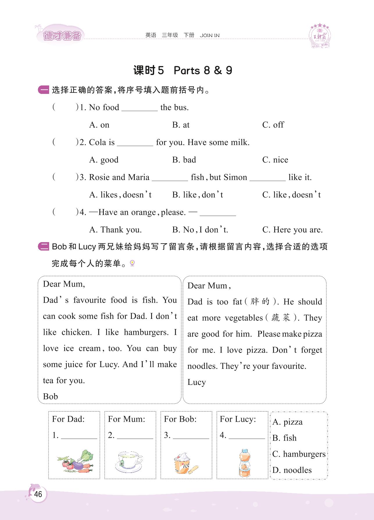 2022下册三年级英语剑桥版 Unit 5 Food—课时 5 Parts 8 & 9