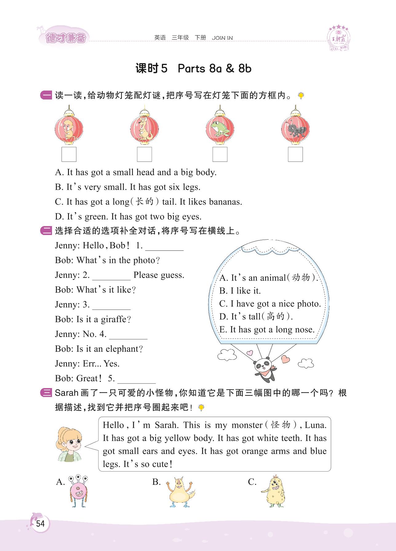 2022下册三年级英语剑桥版 Unit 6 Body—课时 5 Parts 8a & 8b