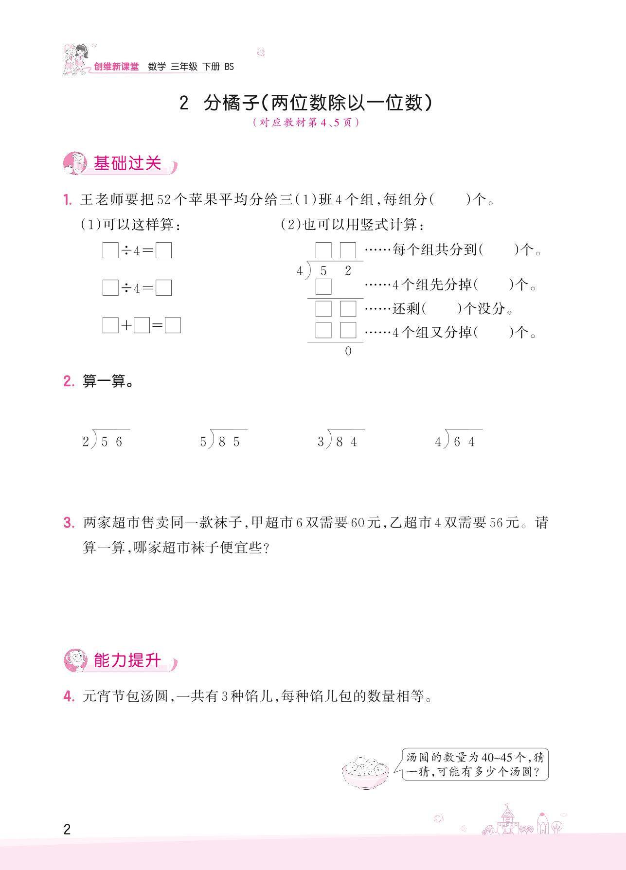 2022下册三年级数学北师版 一 除法——2 分橘子