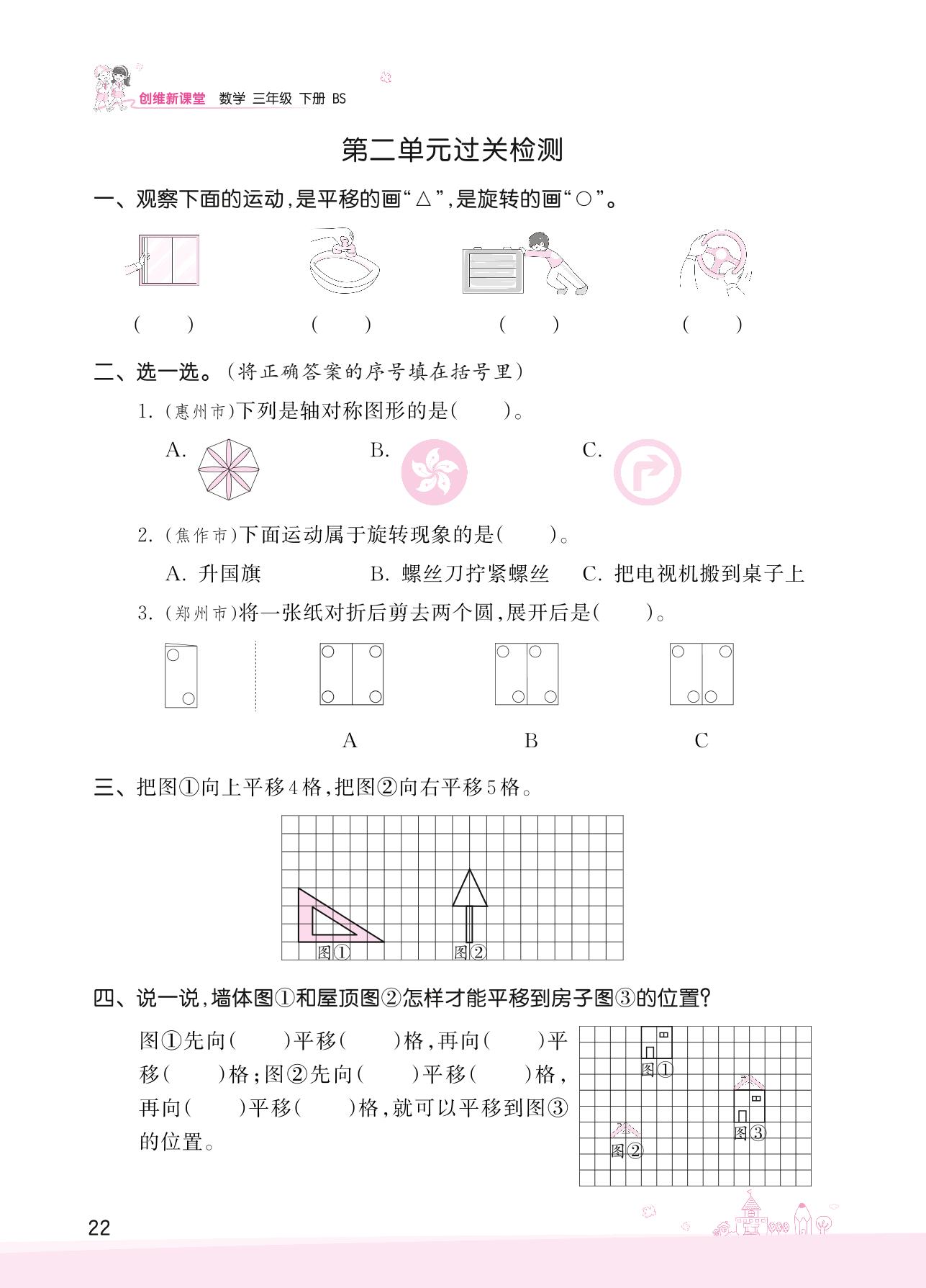 2022下册三年级数学北师版 二 图形的运动——第二单元过关检测