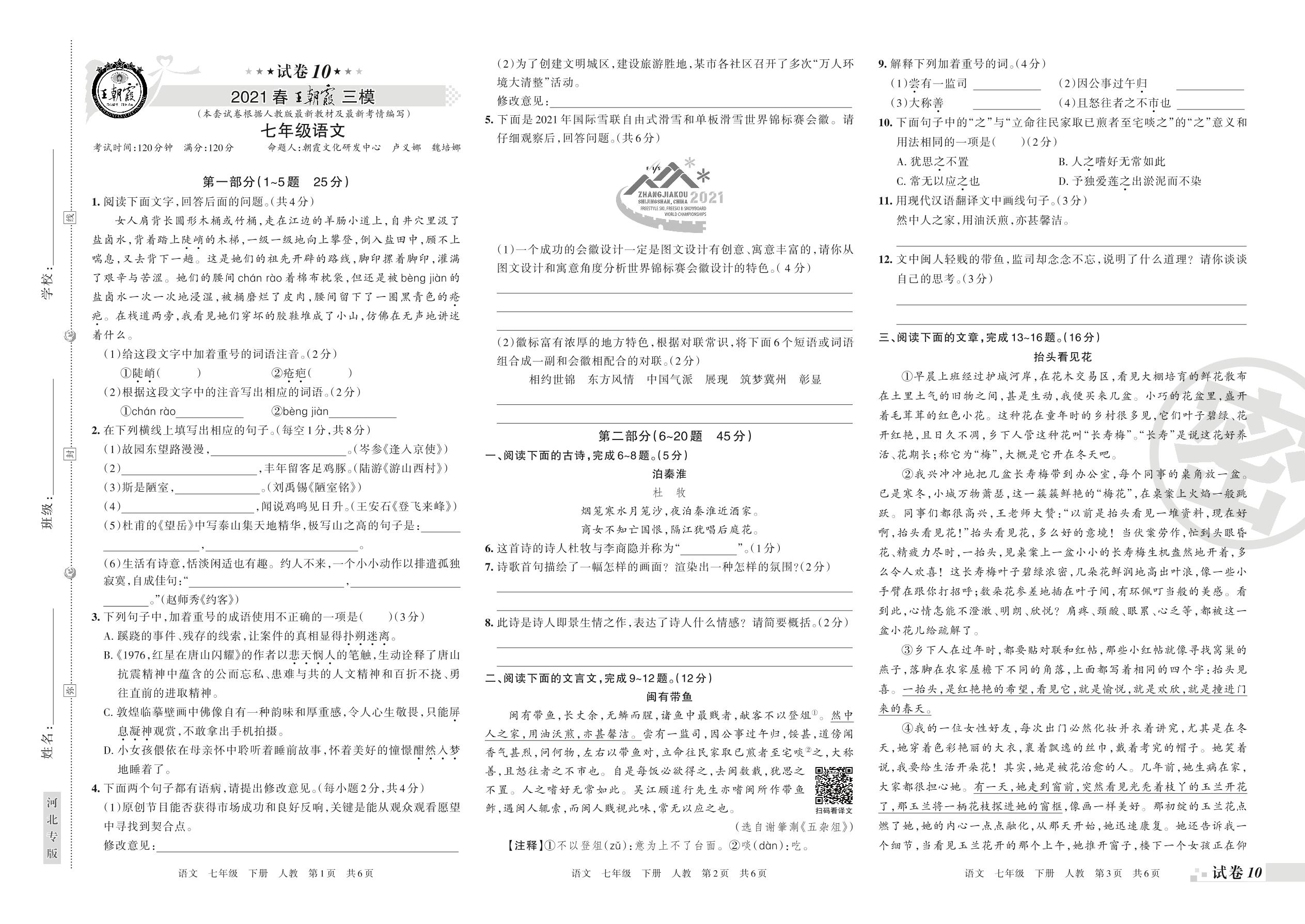 王朝霞期末模拟卷七年级下册语文(人教版)_R2108022707【10】