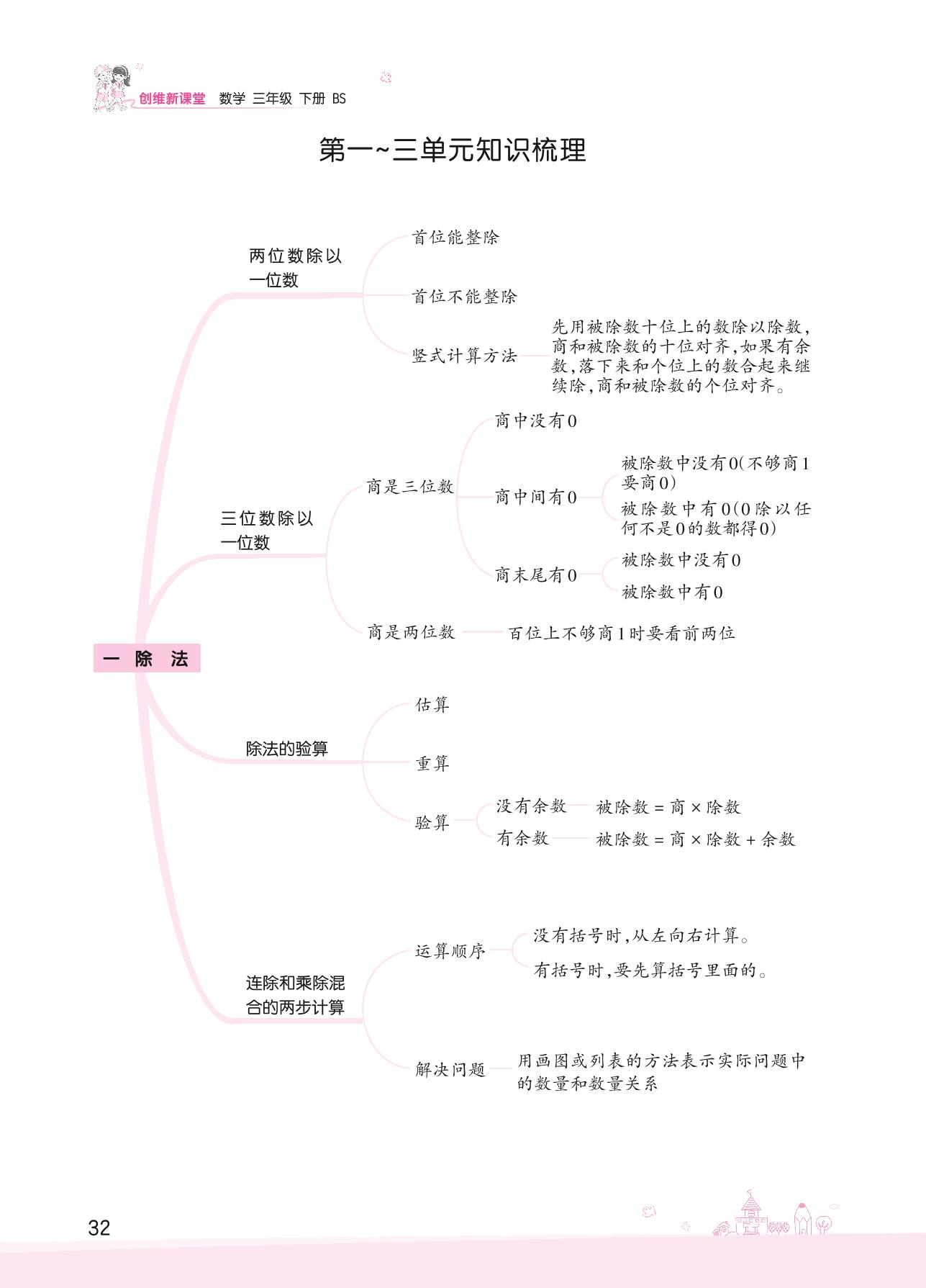 2022下册三年级数学北师版 第一~三单元知识梳理