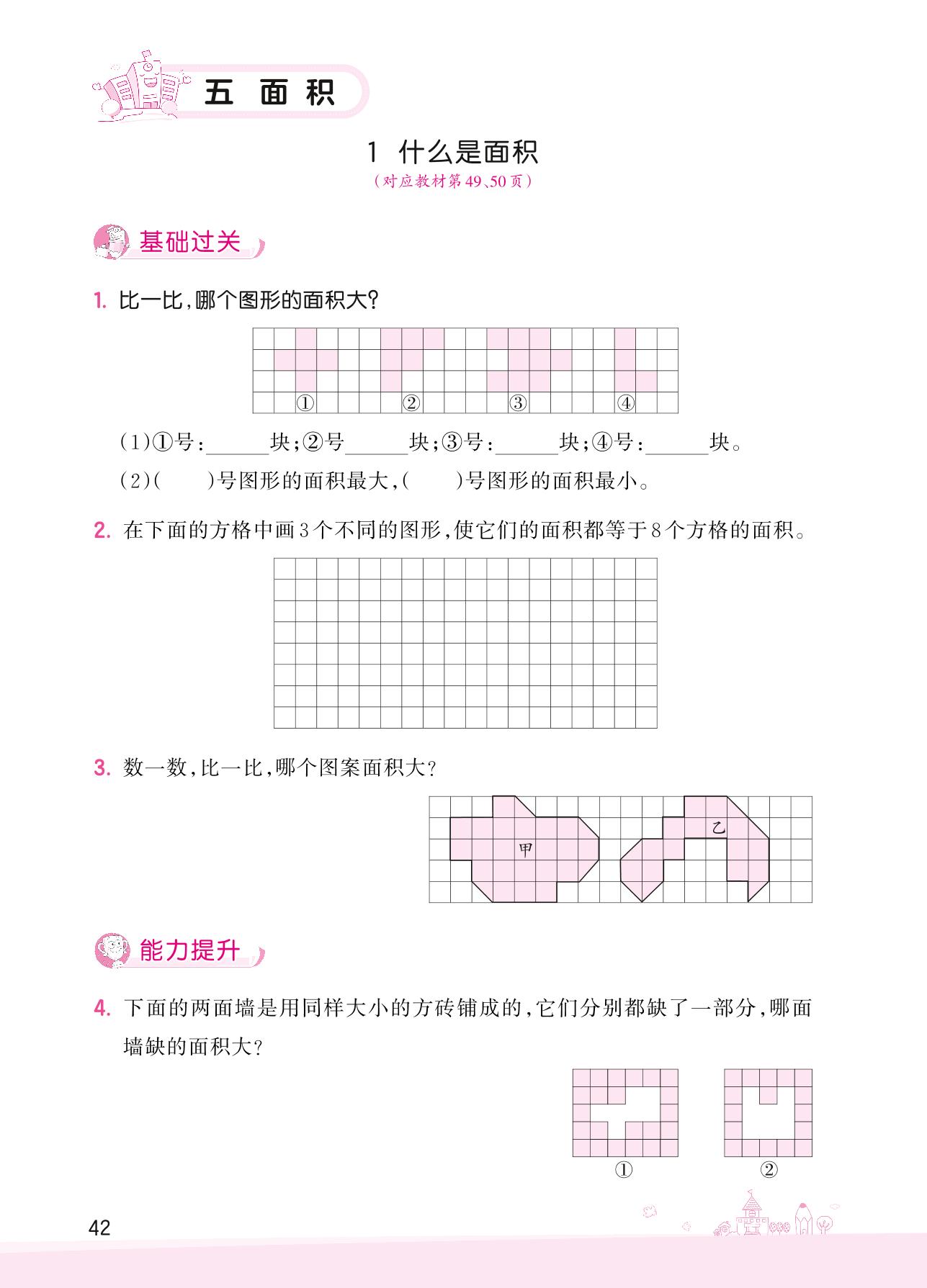 2022下册三年级数学北师版 五 面积——1 什么是面积