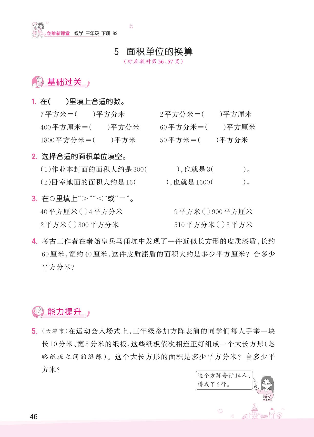 2022下册三年级数学北师版 五 面积——5 面积单位的换算