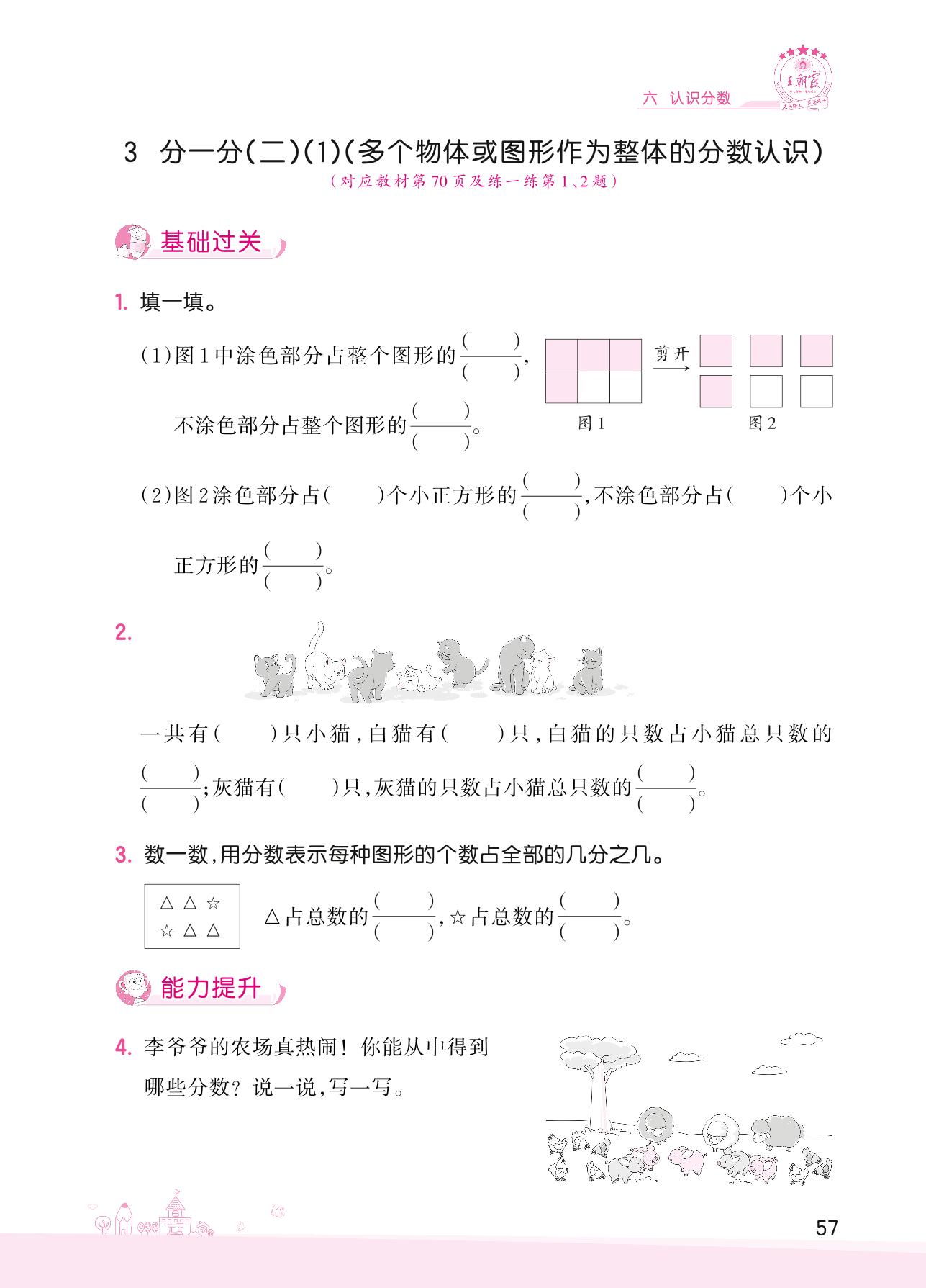 2022下册三年级数学北师版 六 认识分数——3 分一分(二)(1)