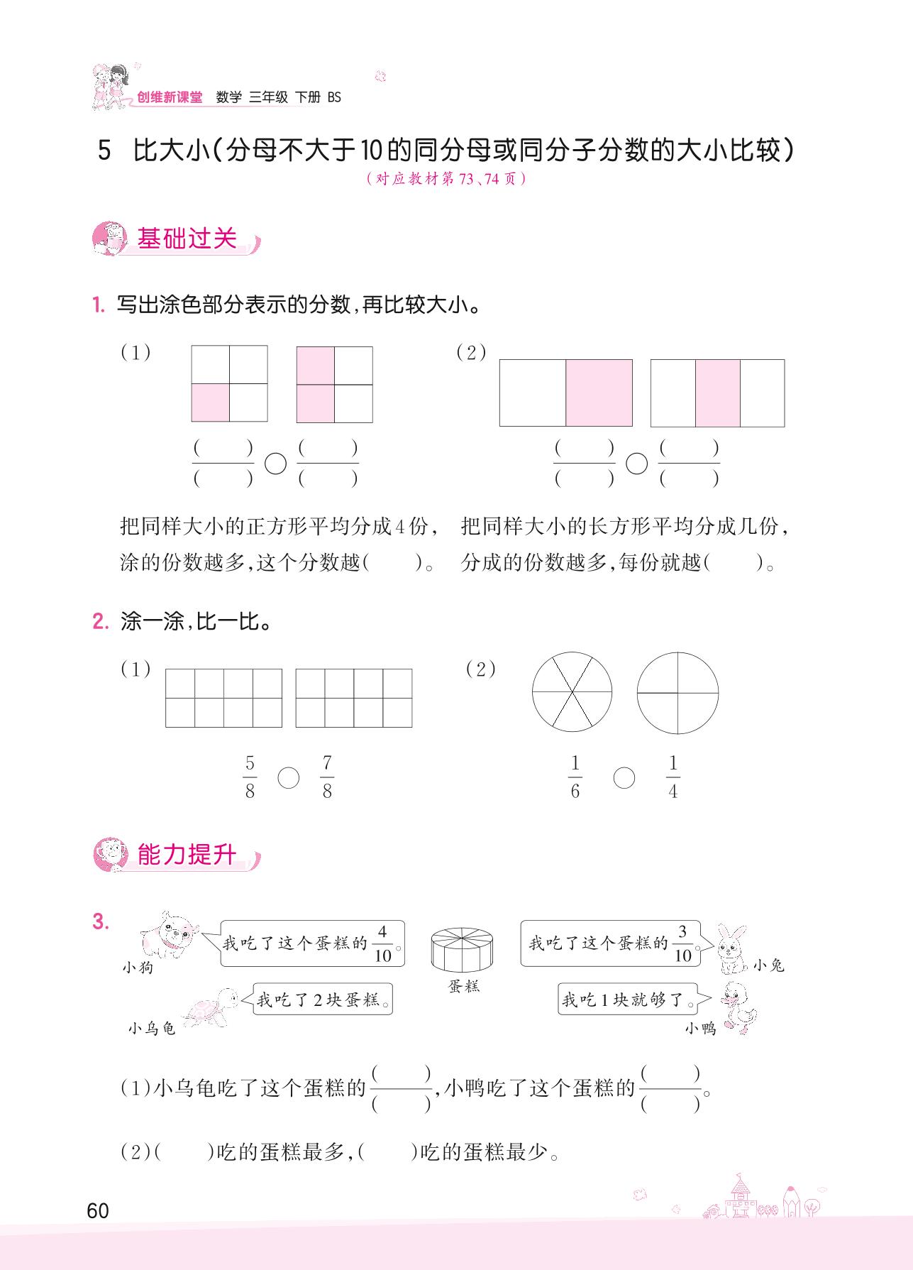 2022下册三年级数学北师版 六 认识分数——5 比大小