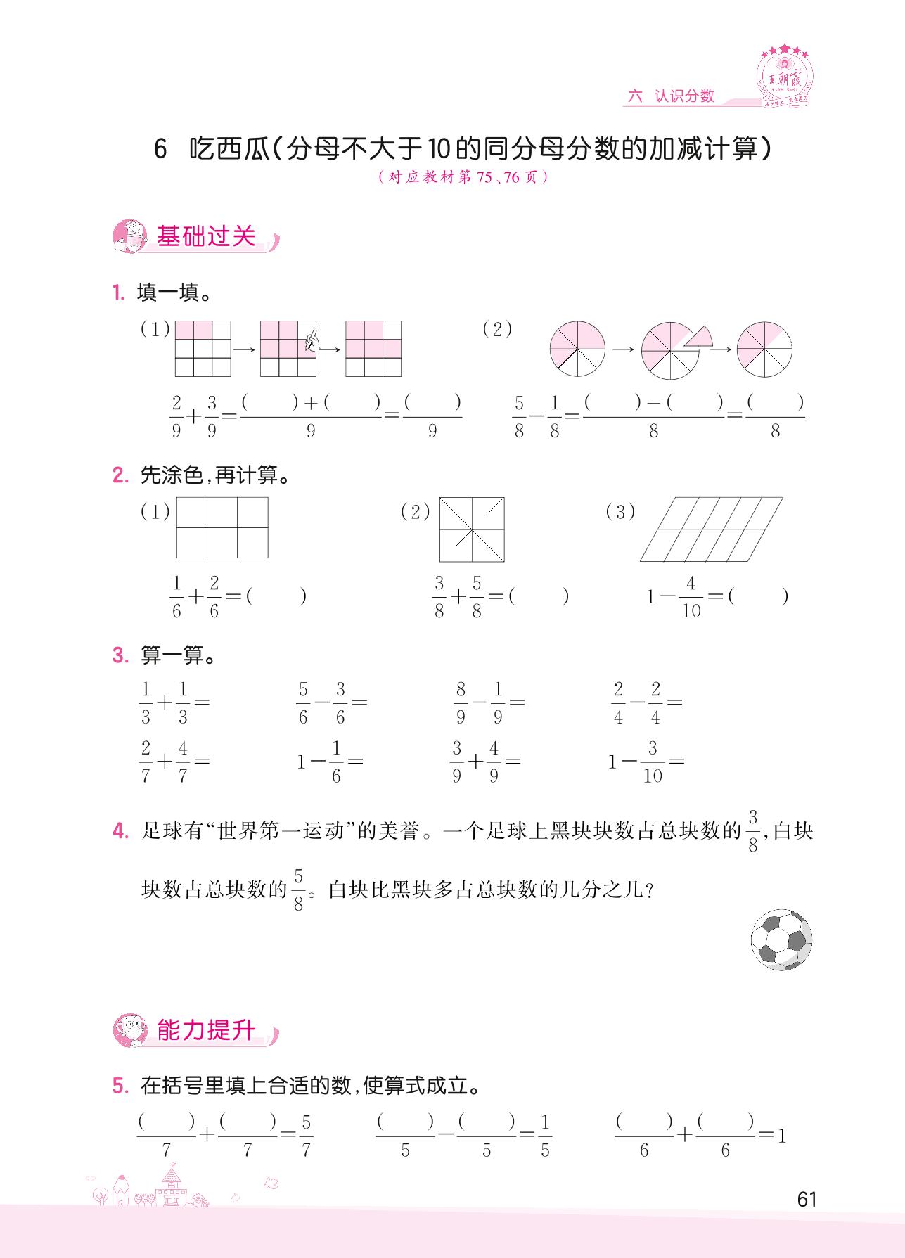 2022下册三年级数学北师版 六 认识分数——6 吃西瓜