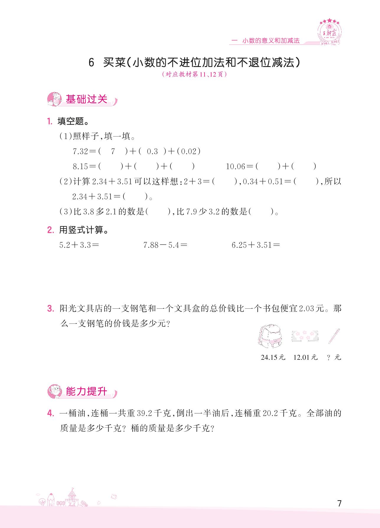 2022下册四年级数学北师版 一 小数的意义和加减法——6 买菜