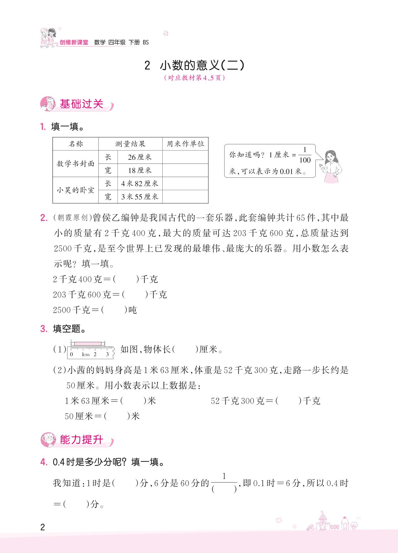 2022下册四年级数学北师版 一 小数的意义和加减法——2 小数的意义(二)