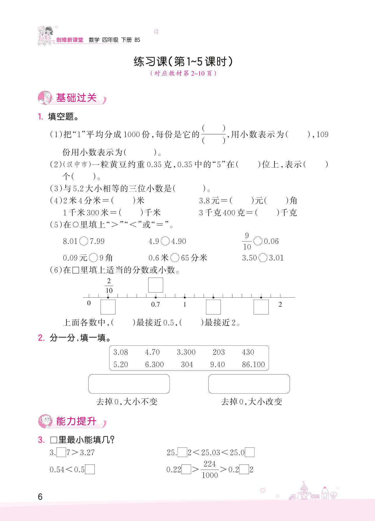 2022下册四年级数学北师版 一 小数的意义和加减法——练习课(第1~5课时)