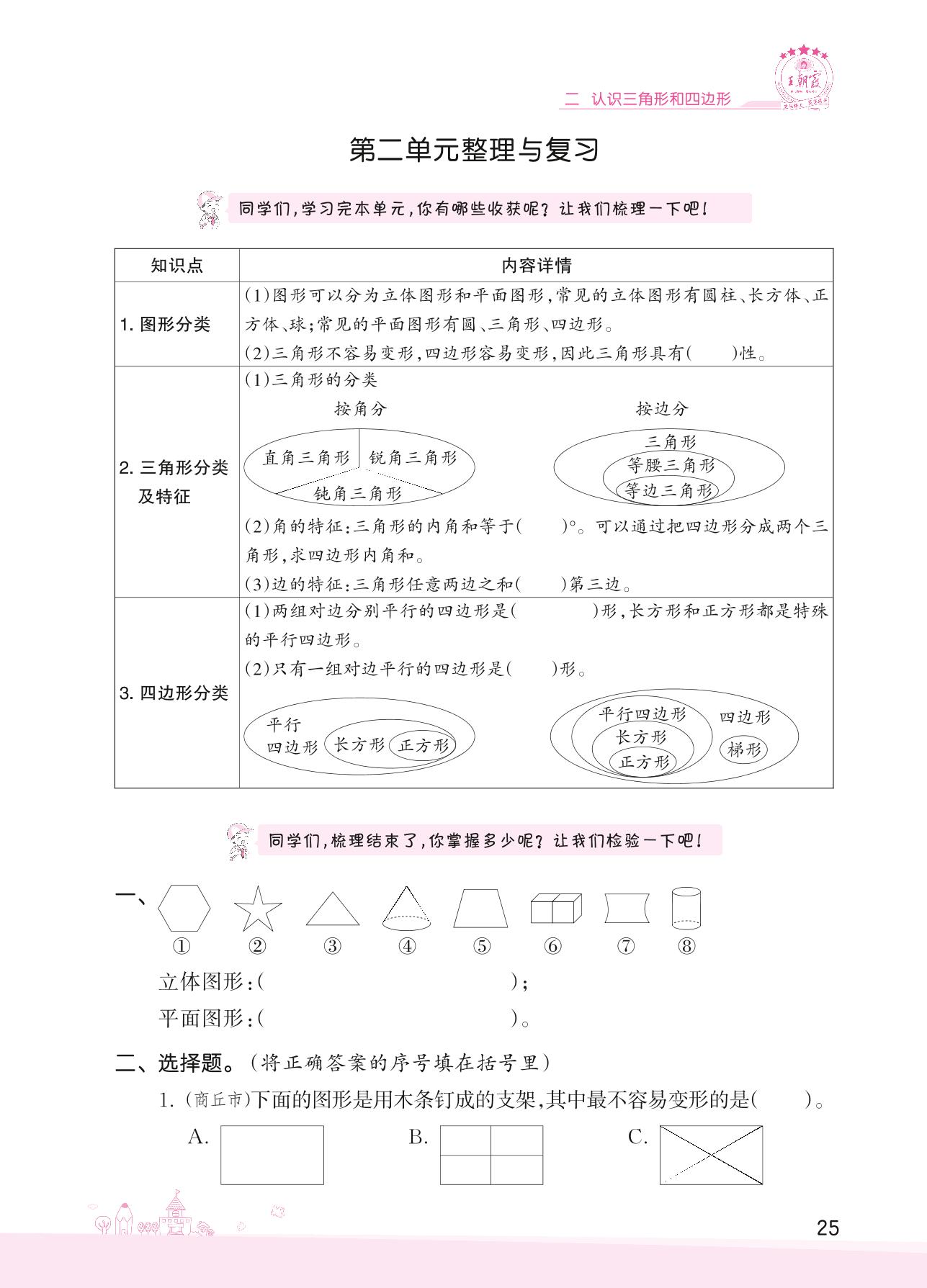 2022下册四年级数学北师版 二 认识三角形和四边形——第二单元整理与复习