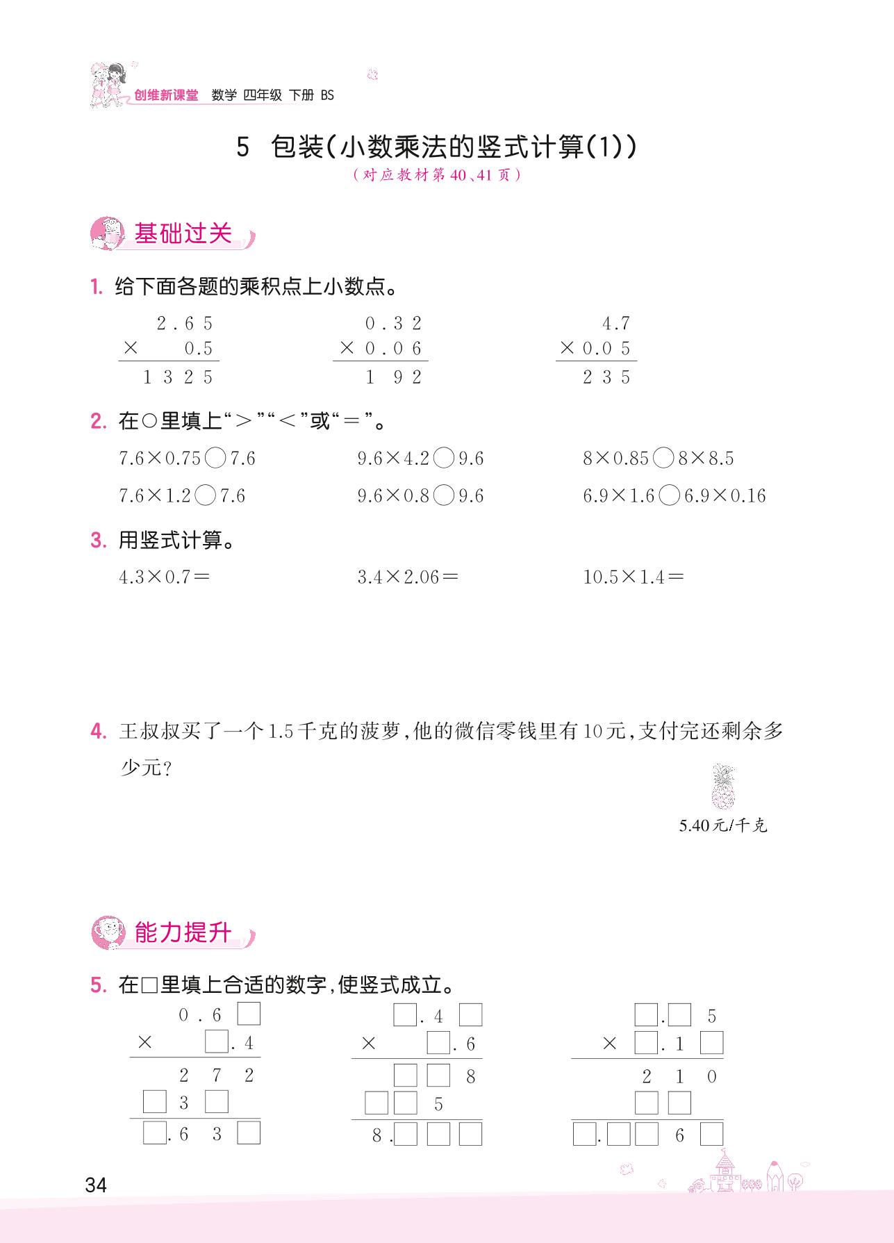2022下册四年级数学北师版 三 小数乘法——5 包装