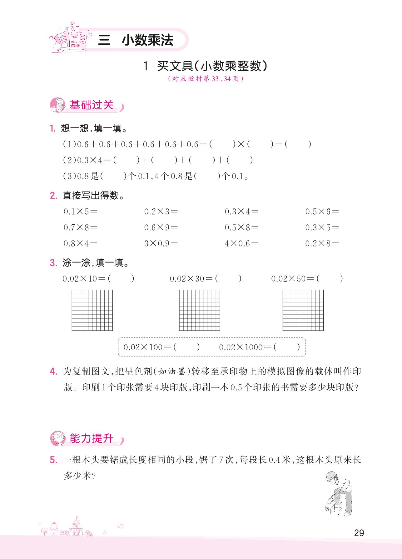 2022下册四年级数学北师版 三 小数乘法——1 买文具