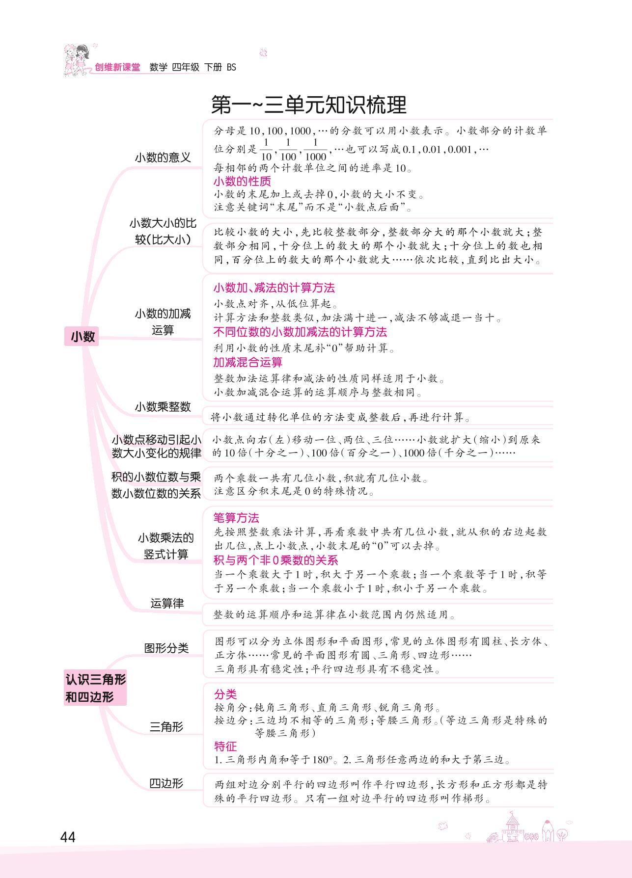 2022下册四年级数学北师版 第一~三单元知识梳理_R220219143507811