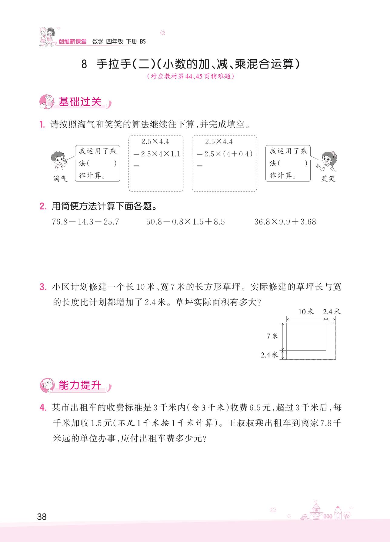 2022下册四年级数学北师版 三 小数乘法——8 手拉手(二)