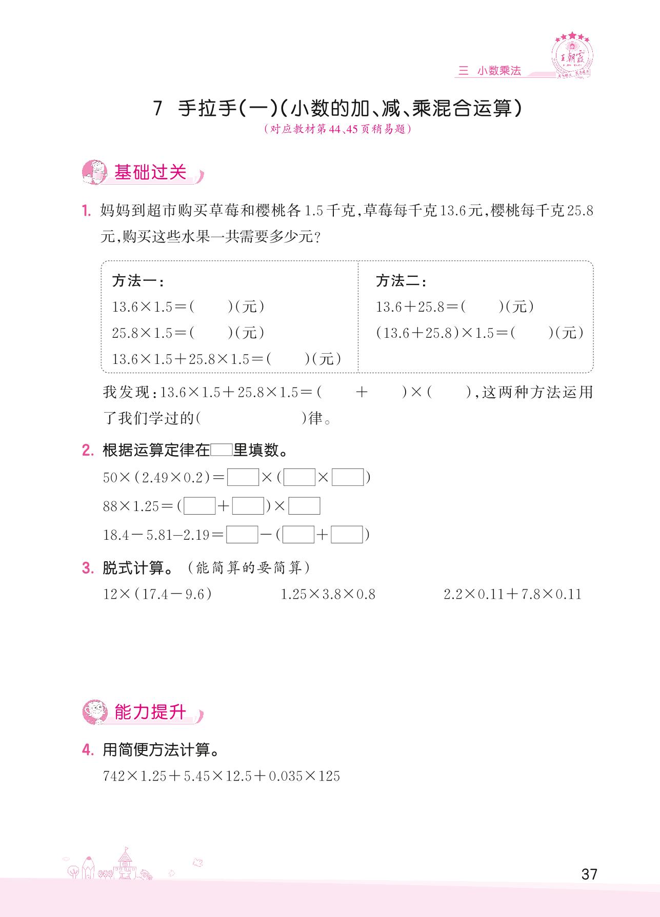 2022下册四年级数学北师版 三 小数乘法——7 手拉手(一)